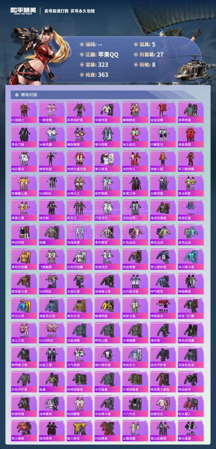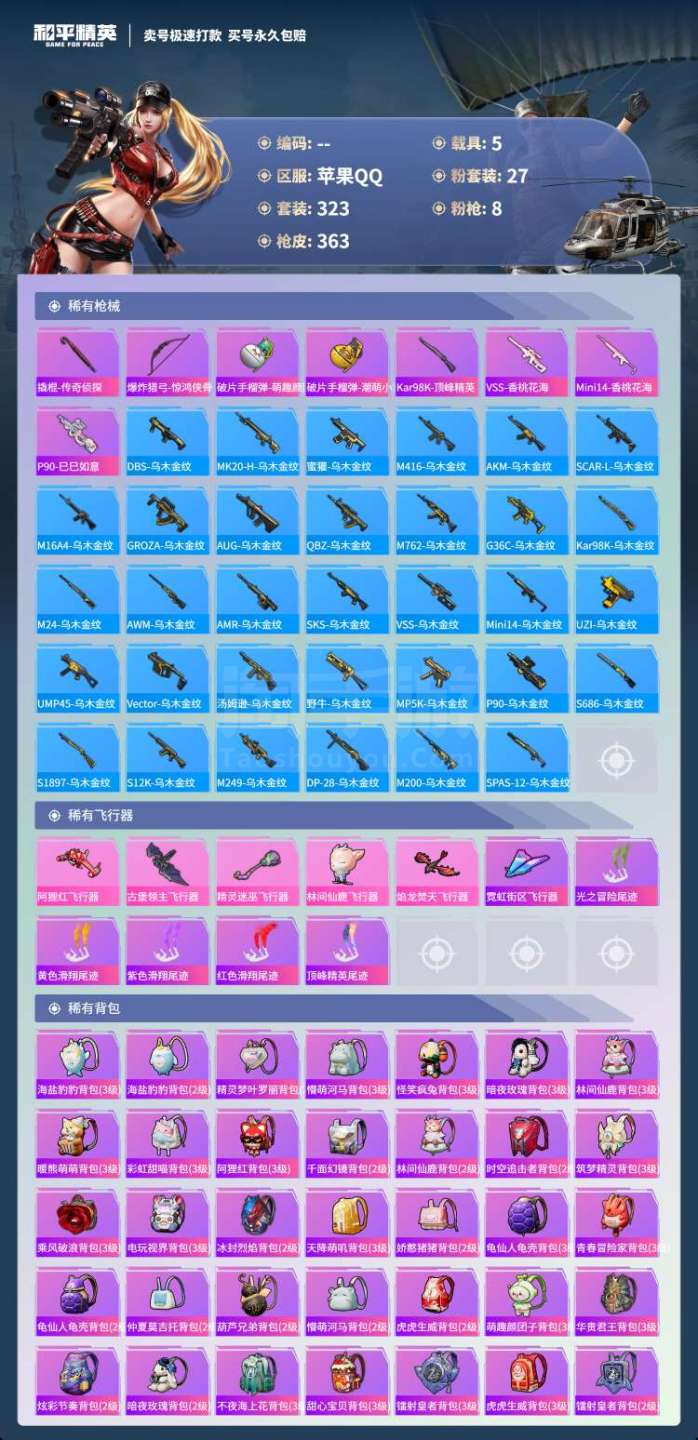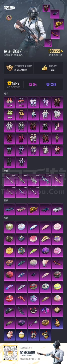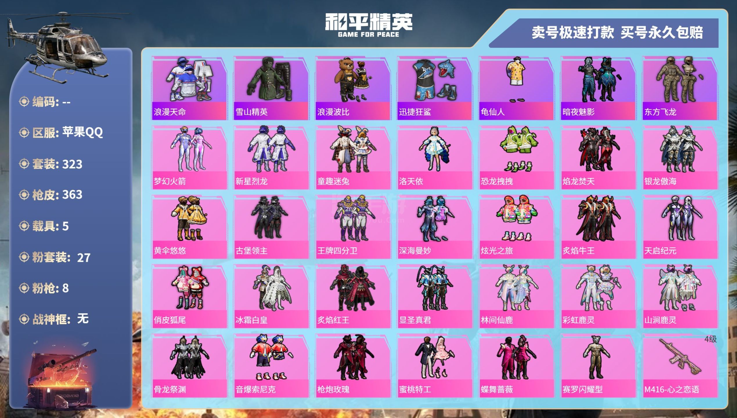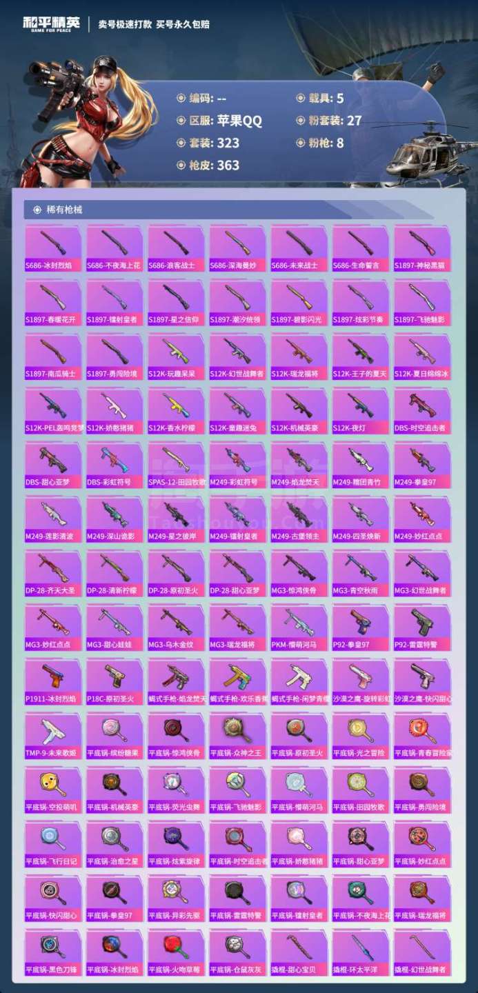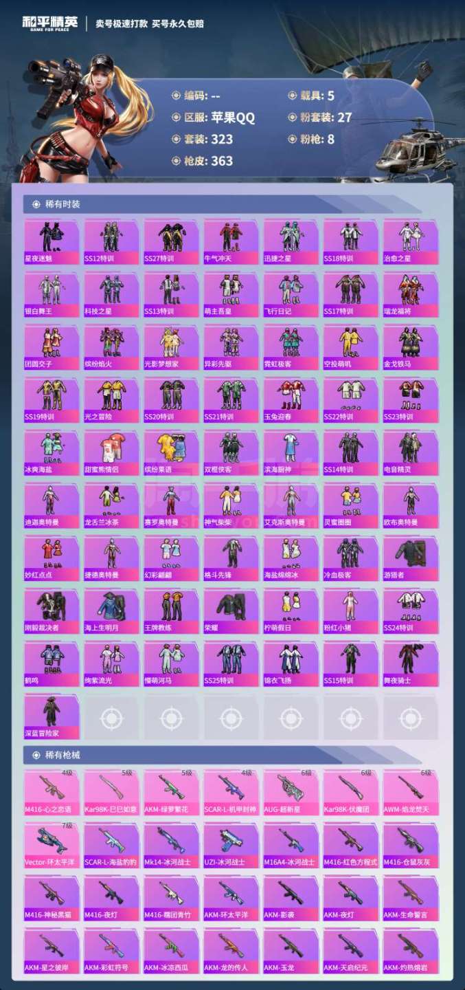 hs45339 苹果手Q-12王牌印记-27粉装-8特效枪-5载具-153955热力值-323套装-