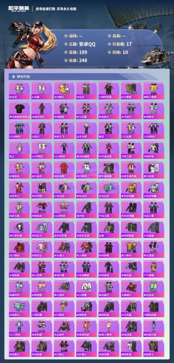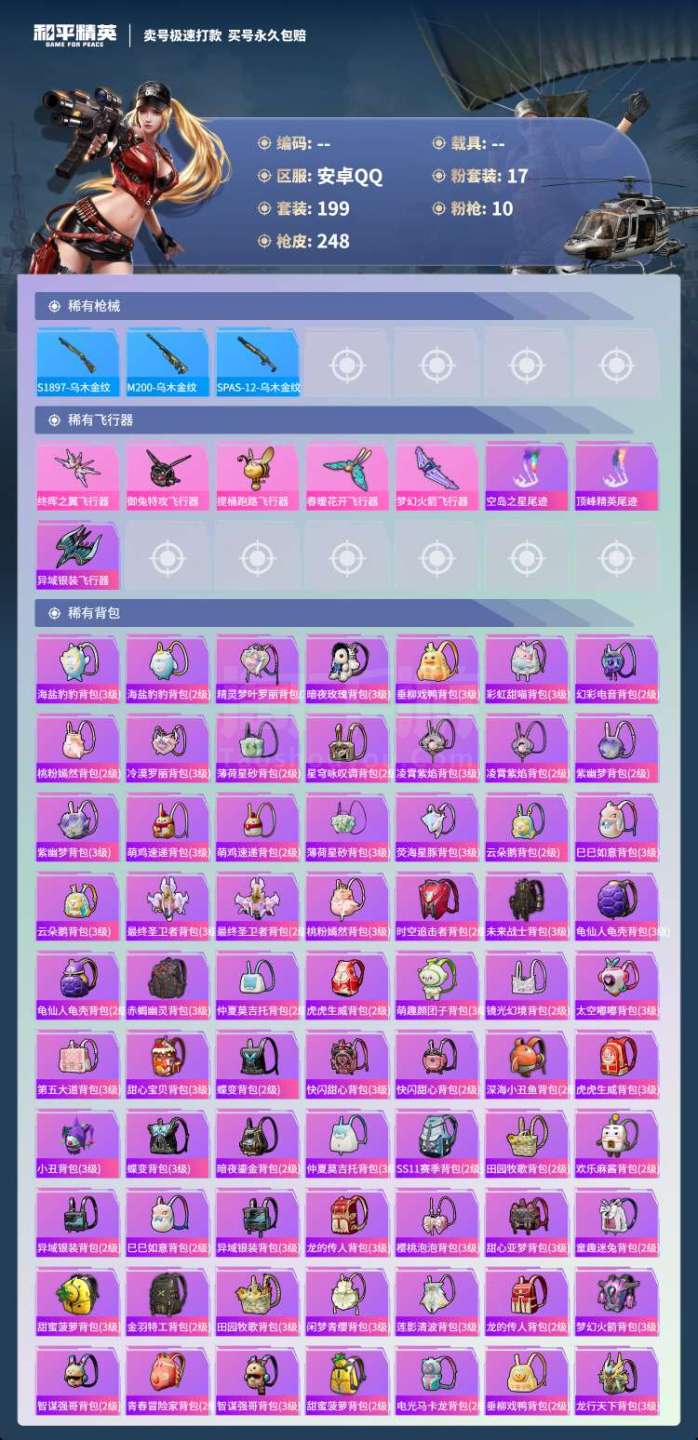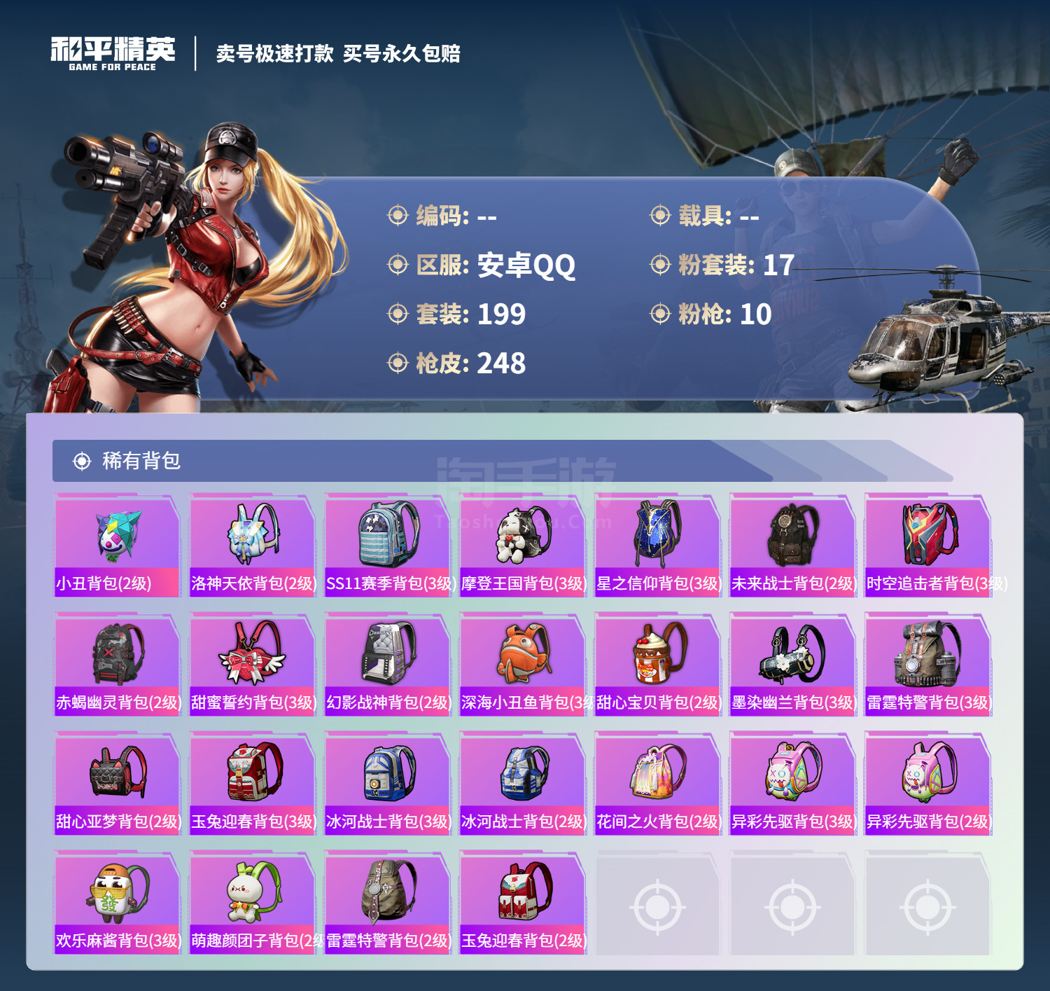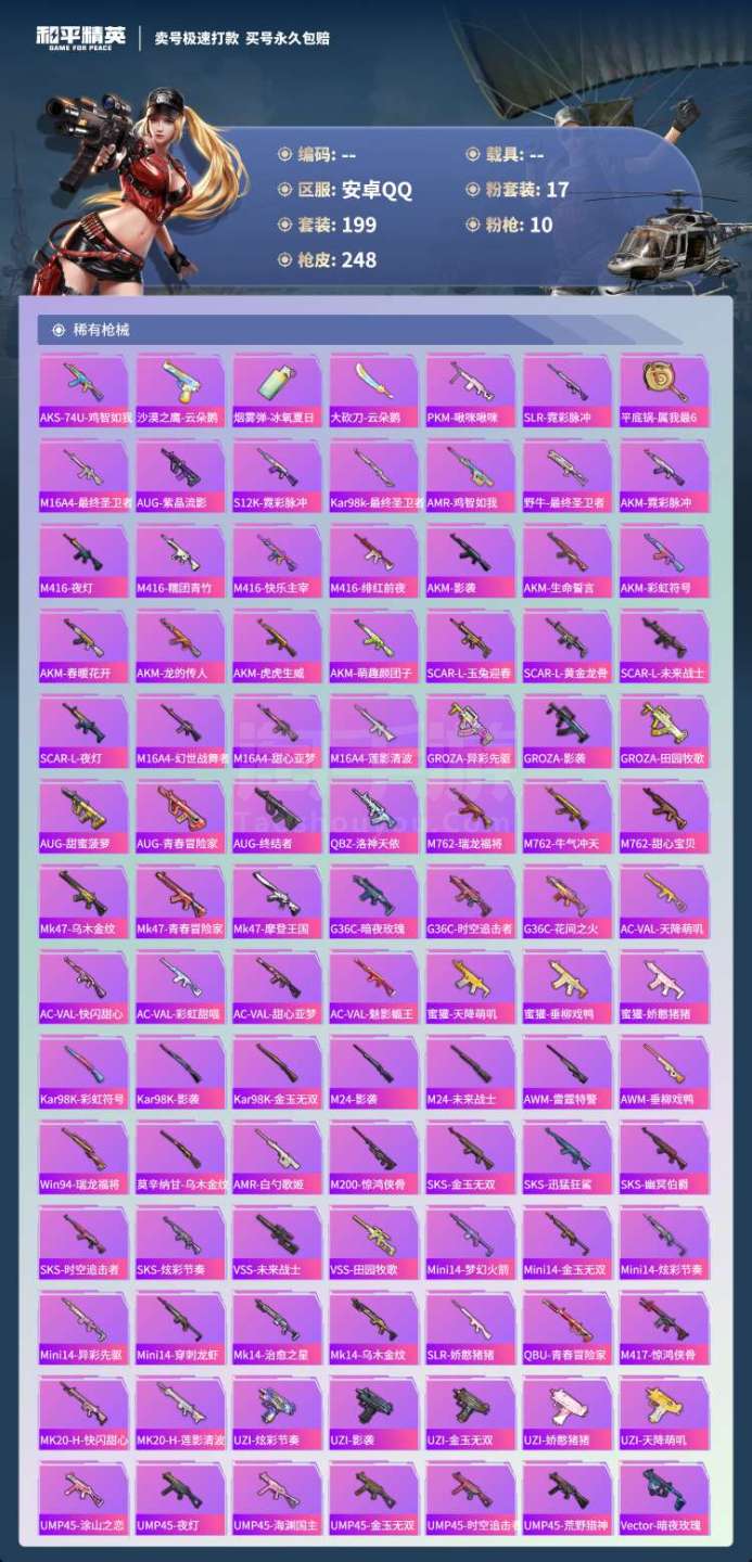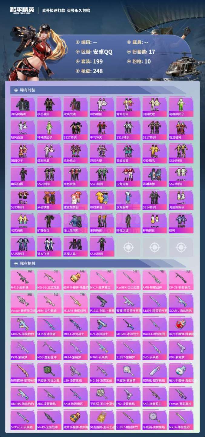 hs45230 安卓手Q-12王牌印记-17粉装-10特效枪-0载具-84739热力值-199套装-