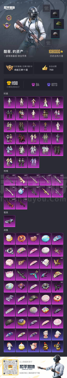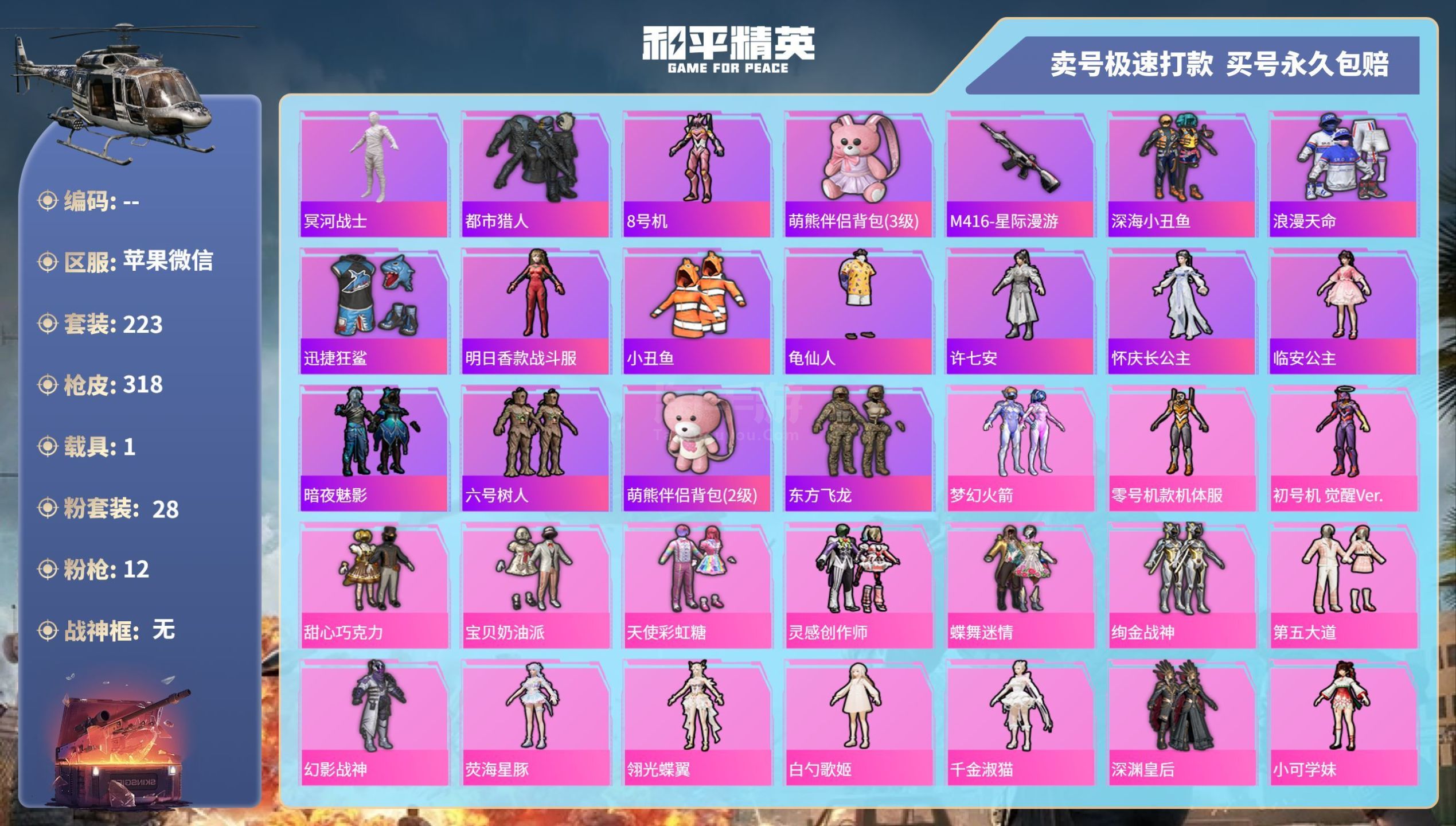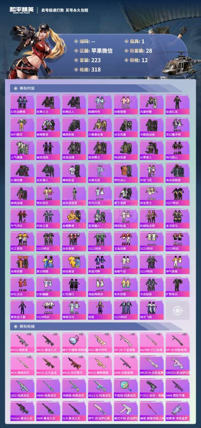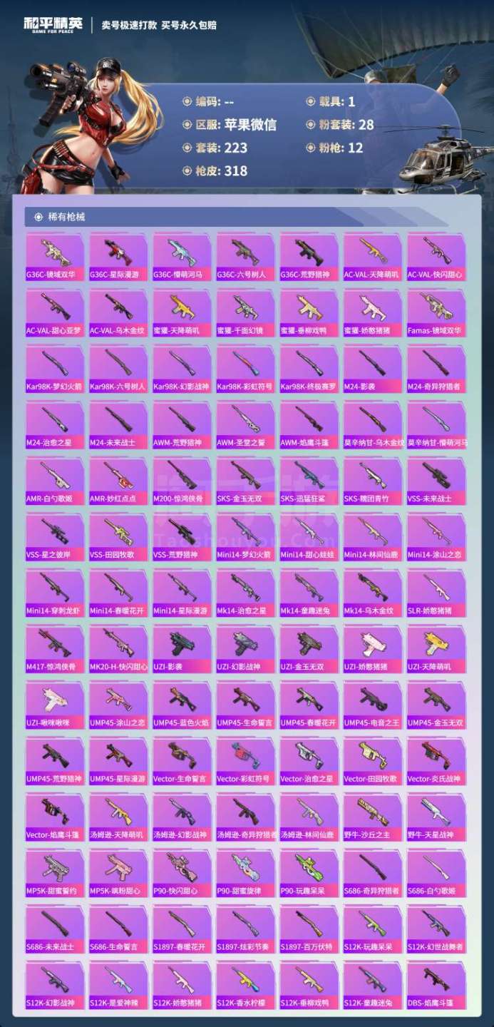 hs45770 苹果v-10王牌印记-28粉装-12特效枪-1载具-108000热力值-223套装