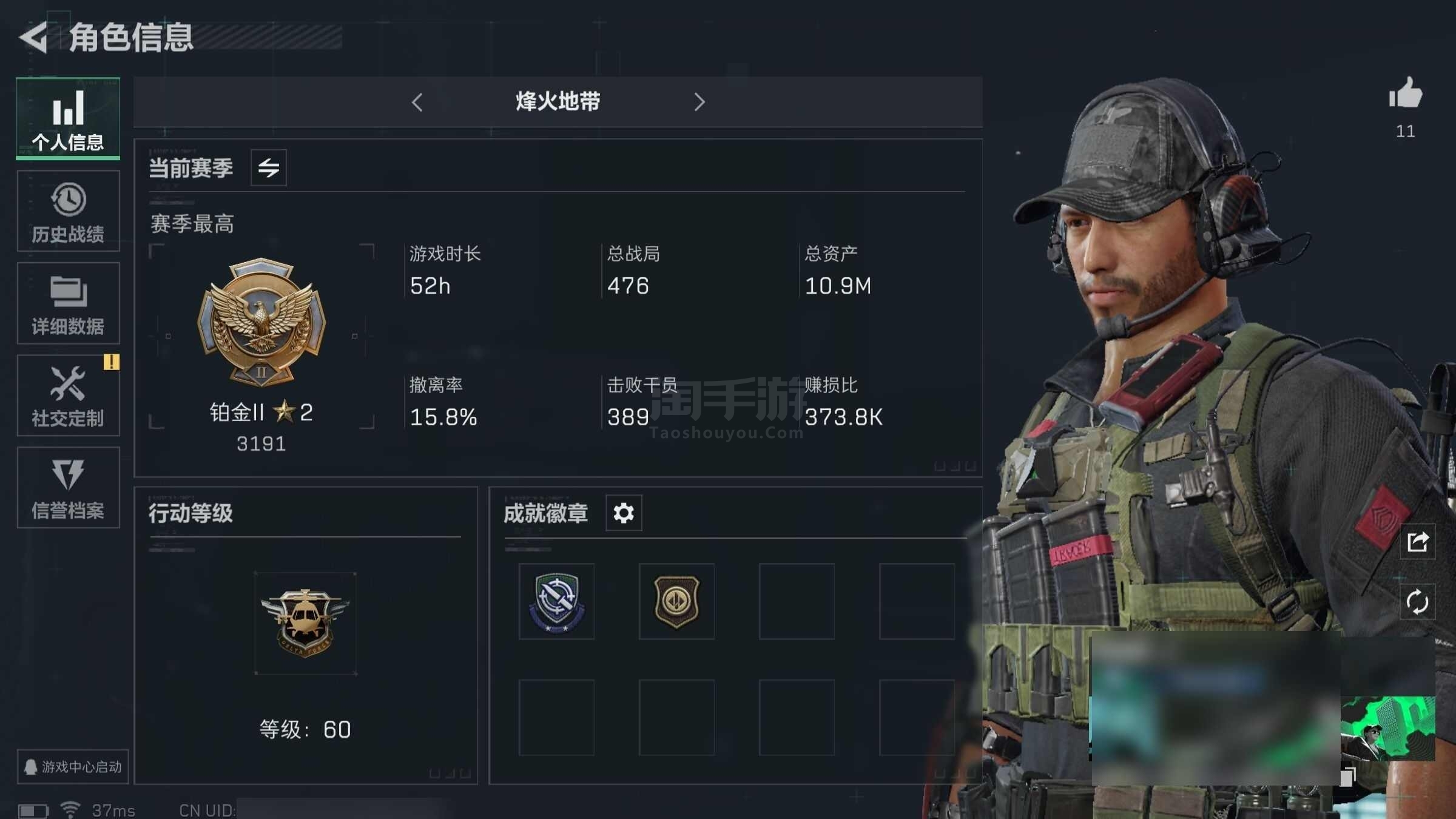 【个人信息】战场等级28 军士长, 行动等级60 铂金