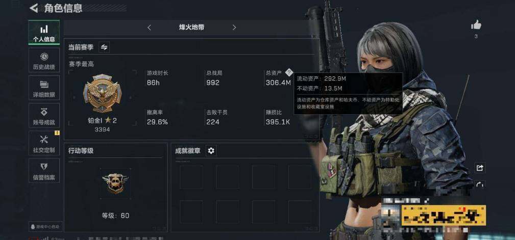 三角洲行动【苹果QQ】等级60级/蜂医/18900w现金/总资产306m