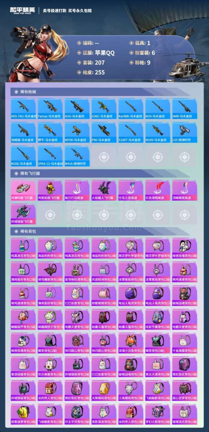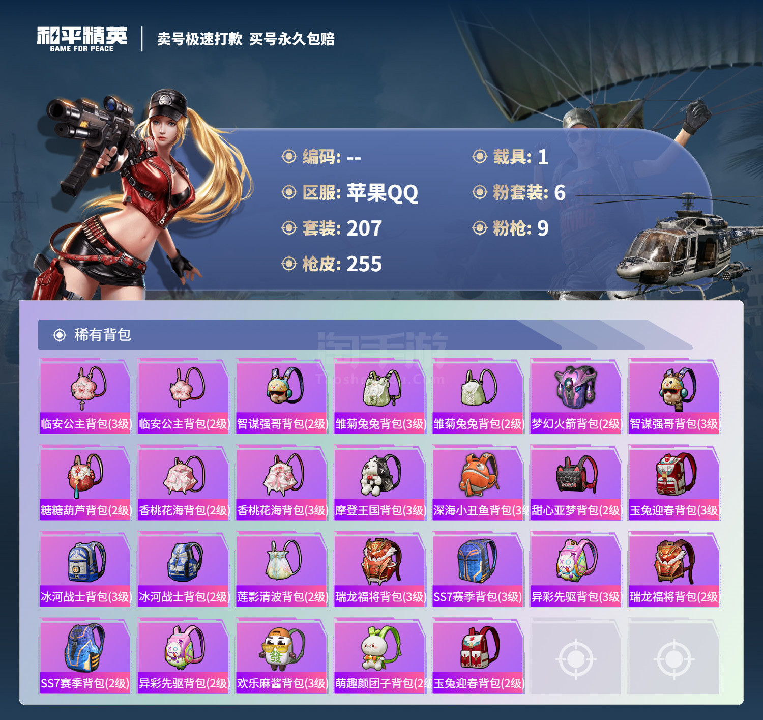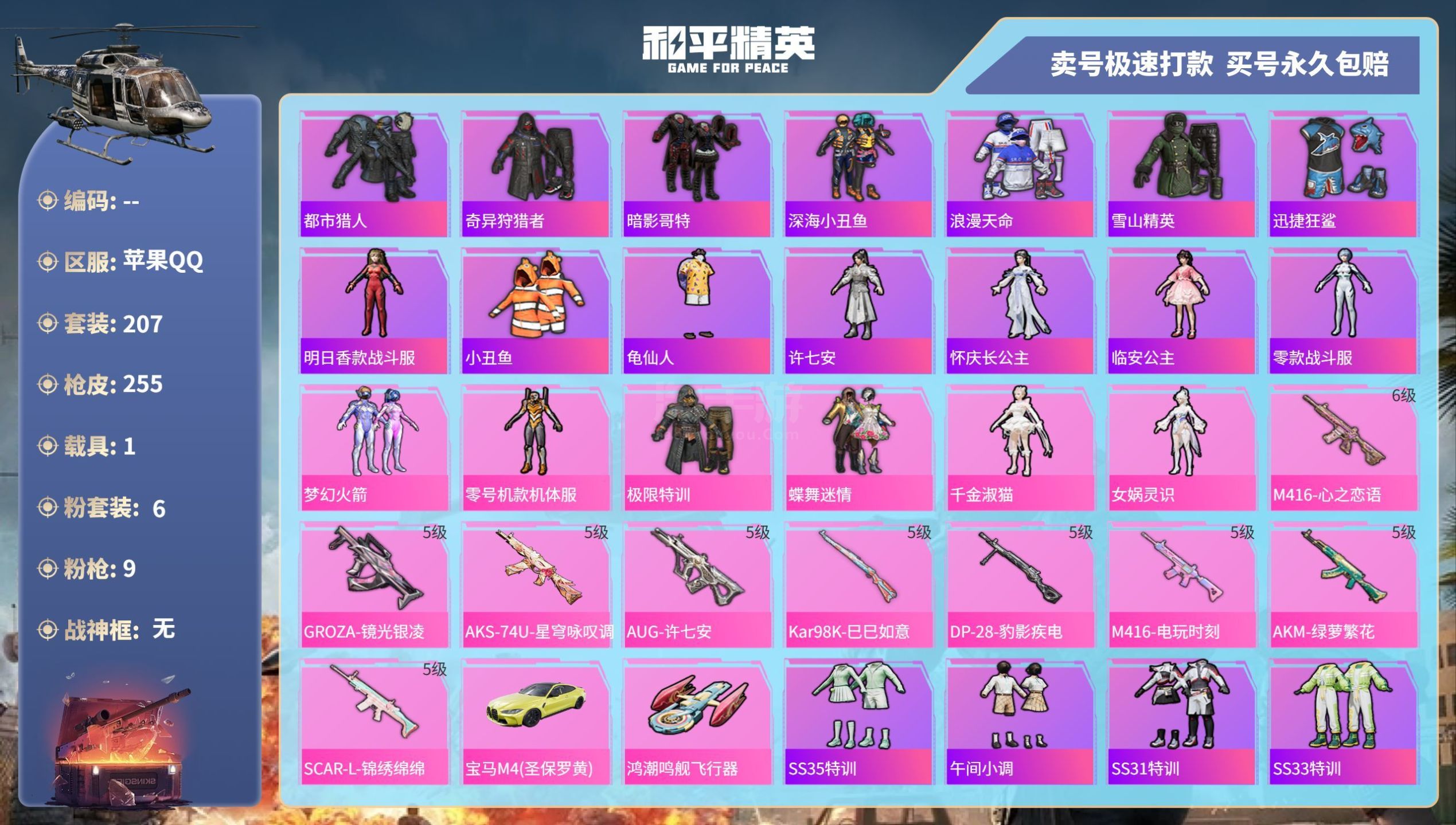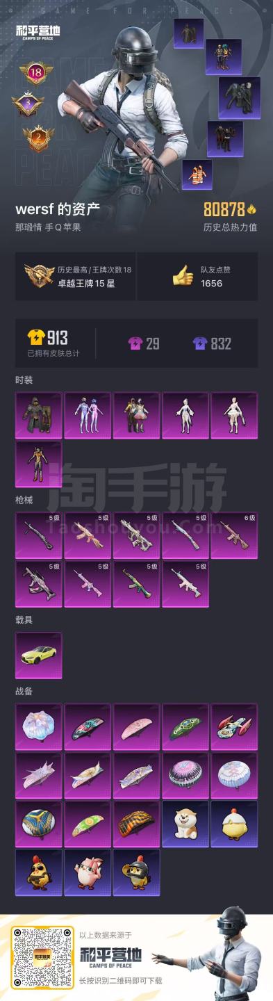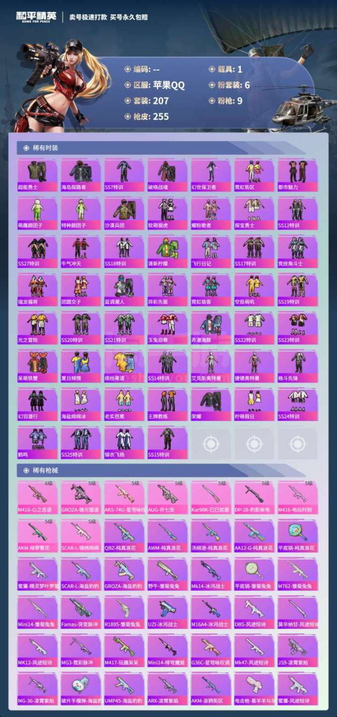 hs45411 苹果手Q-18王牌印记-6粉装-9特效枪-1载具-81240热力值-207套装-25