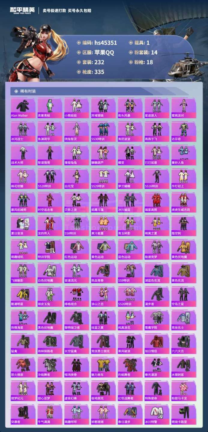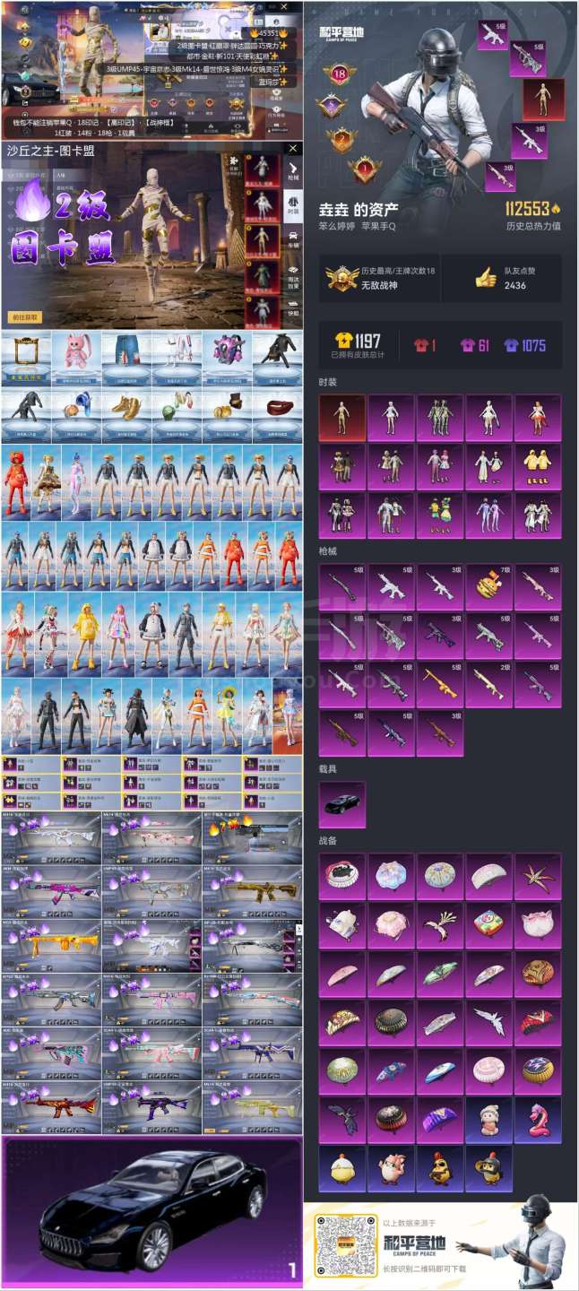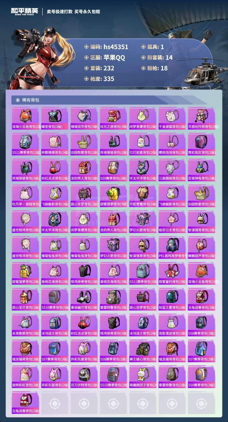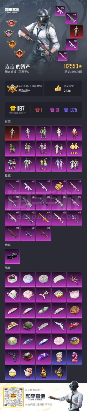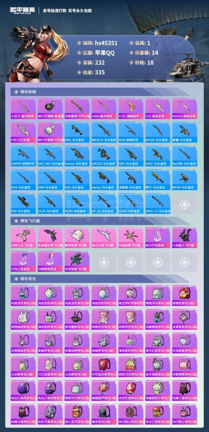 hs45351 苹果手Q-18王牌印记-有战神框-14粉装-18特效枪-1载具-112653热力值-
