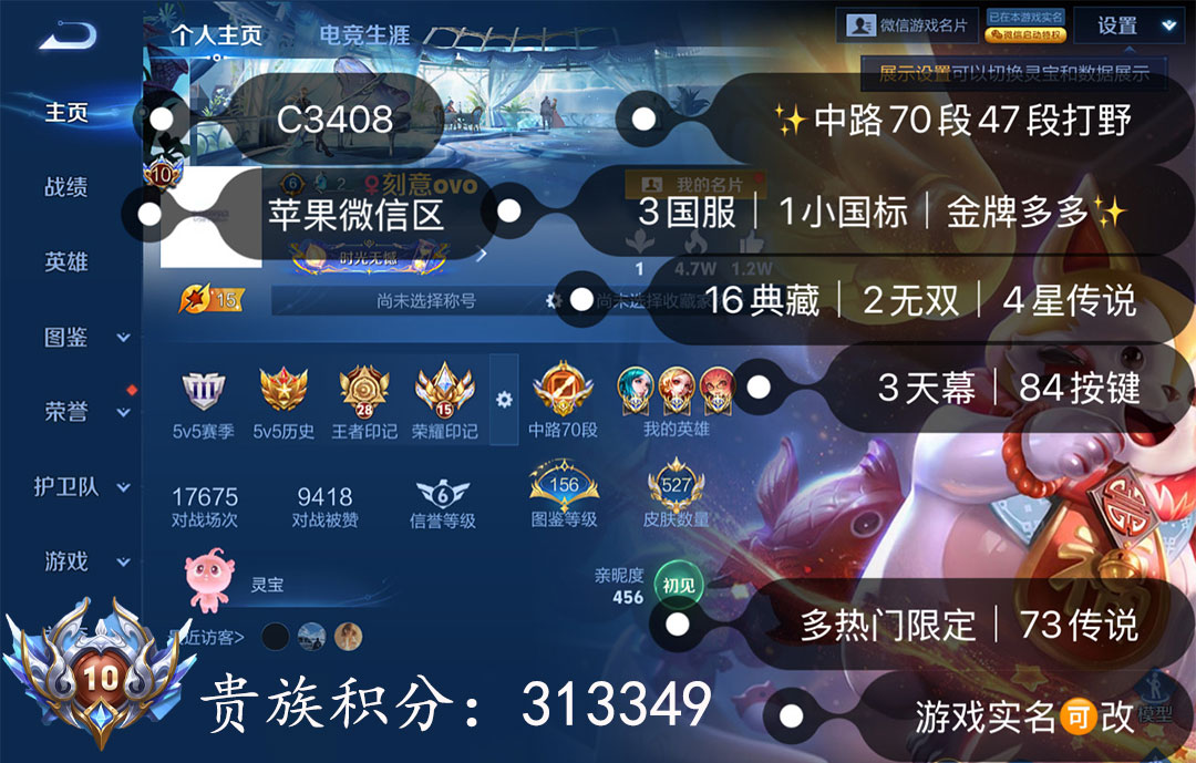 和平精英【苹果微信】王者527皮3大国标安琪拉妲己王昭君7红19车63枪47粉