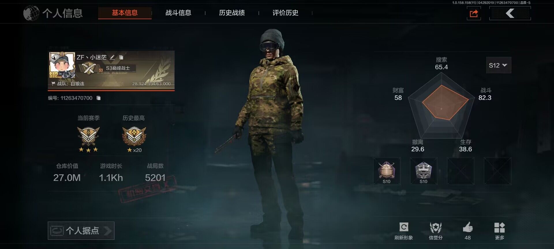 暗区突围【安卓QQ】qq区不可二次 总资产27m 科恩币5042k 资产号