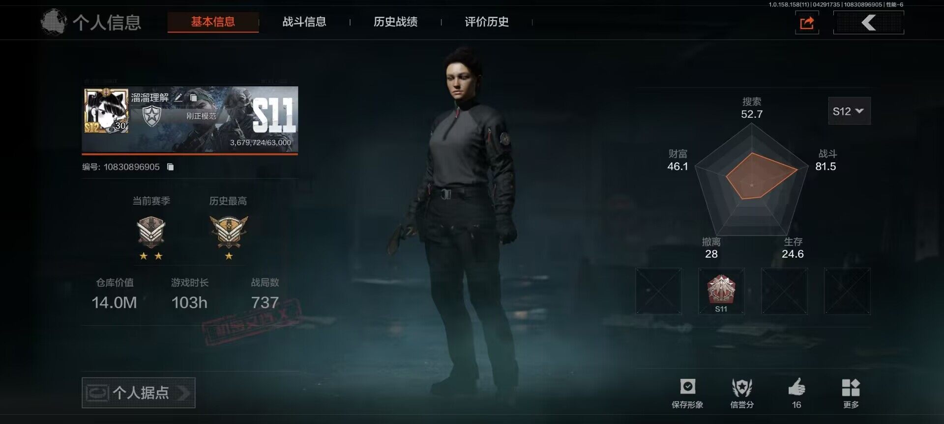 暗区突围【安卓QQ】qq区可二次 总资产14m 科恩币 15224 一堆小紫皮肤 资产号