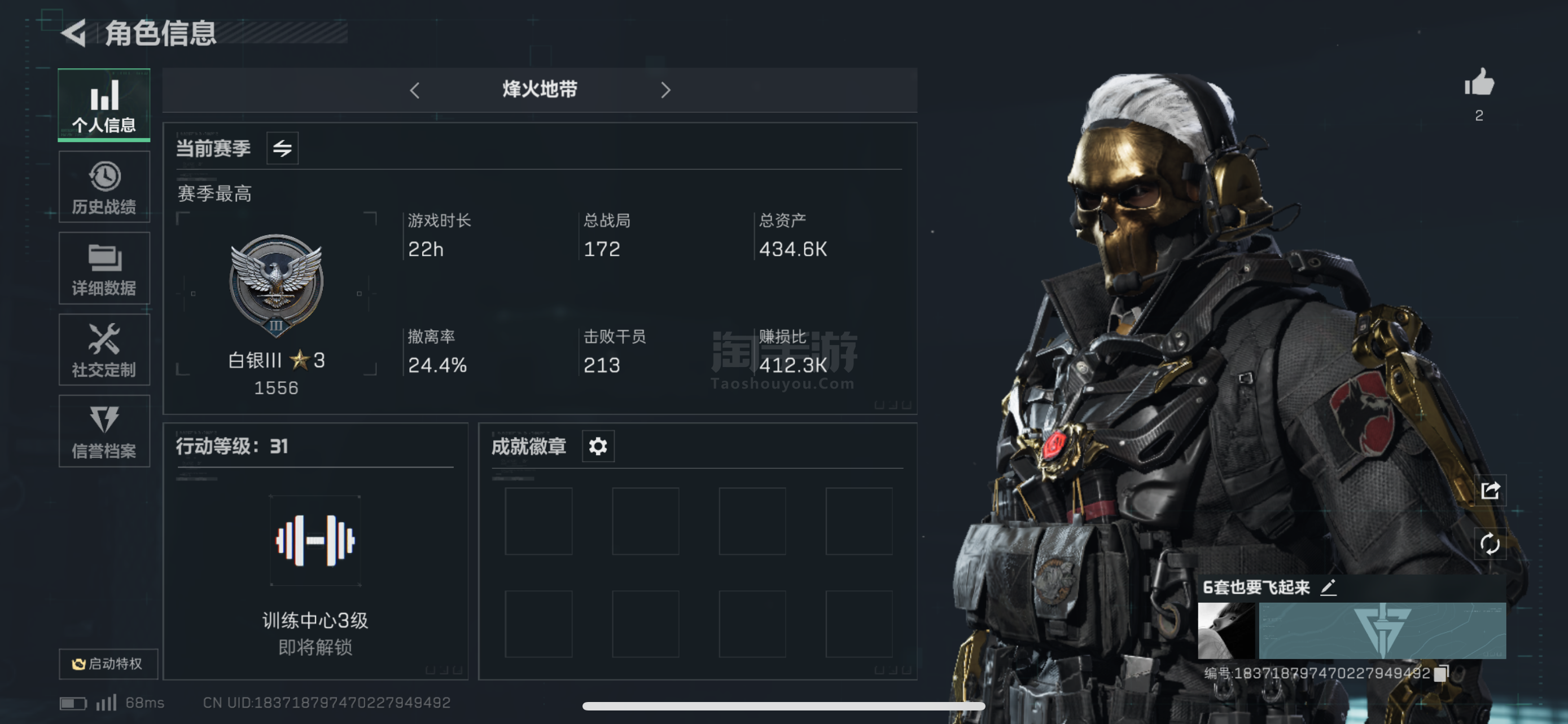 三角洲行动【苹果QQ】三角洲q区 不可以二次 总资产128M 哈夫币69000K 黑海 4个金皮 超