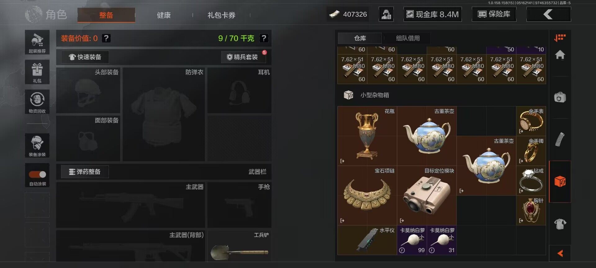 暗区突围【安卓QQ】安卓q可二次修改 总资产22.1m 科恩币407326 现金库8.4m