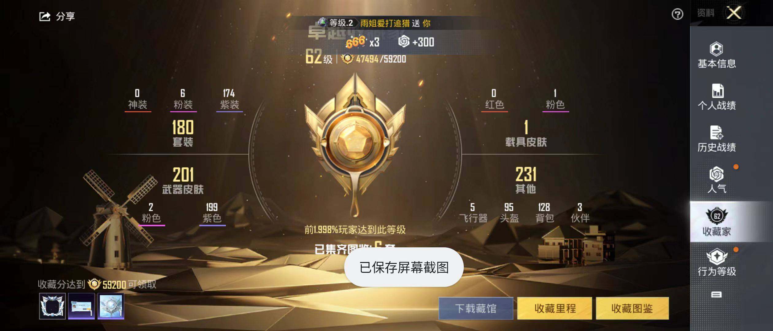 【商品标题】:安卓 手Q-6粉装-2特效枪-1载具-1粉色飞行器-69661热力值-10王牌印记-180套装-232枪皮