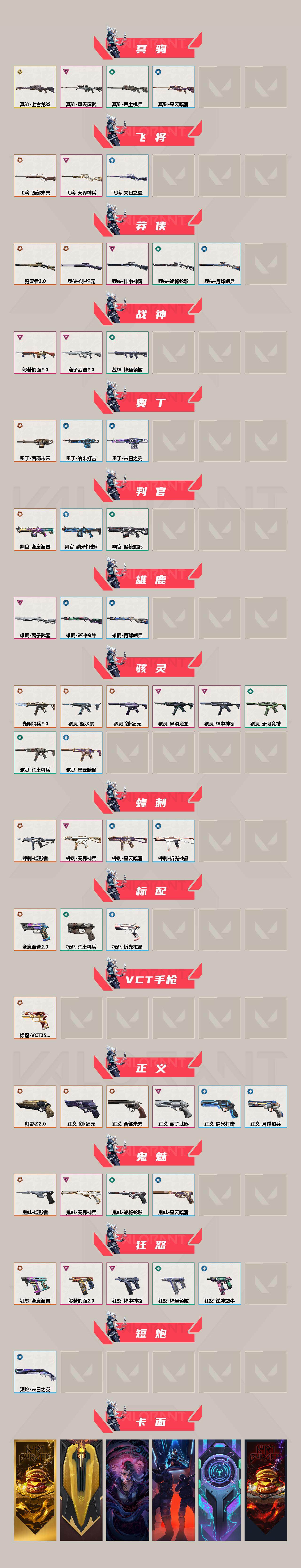 【套装】:噬影者套装,VCT 2025 赛季套装,西部未来套装,创·纪元套装,归零者//2.0套装,般若假面//2.0套装,异鳞魔蛇套装,天界神兵套装,英雄之选套装,神中神罚套装