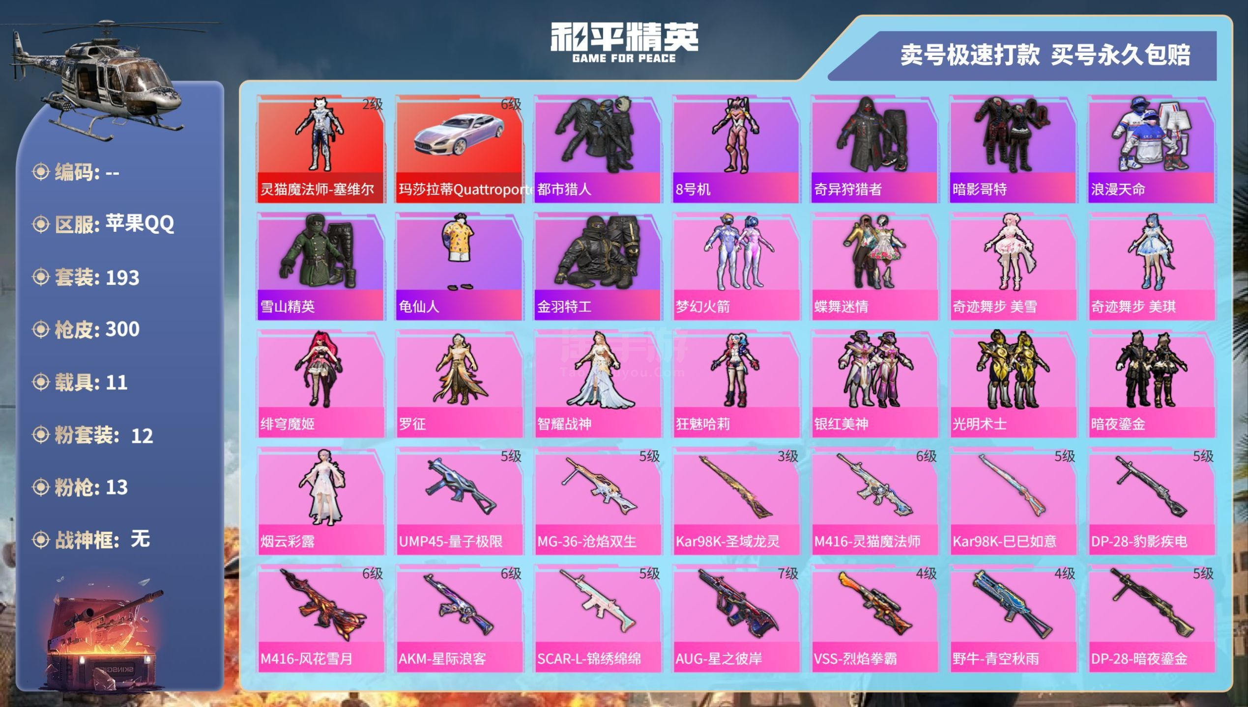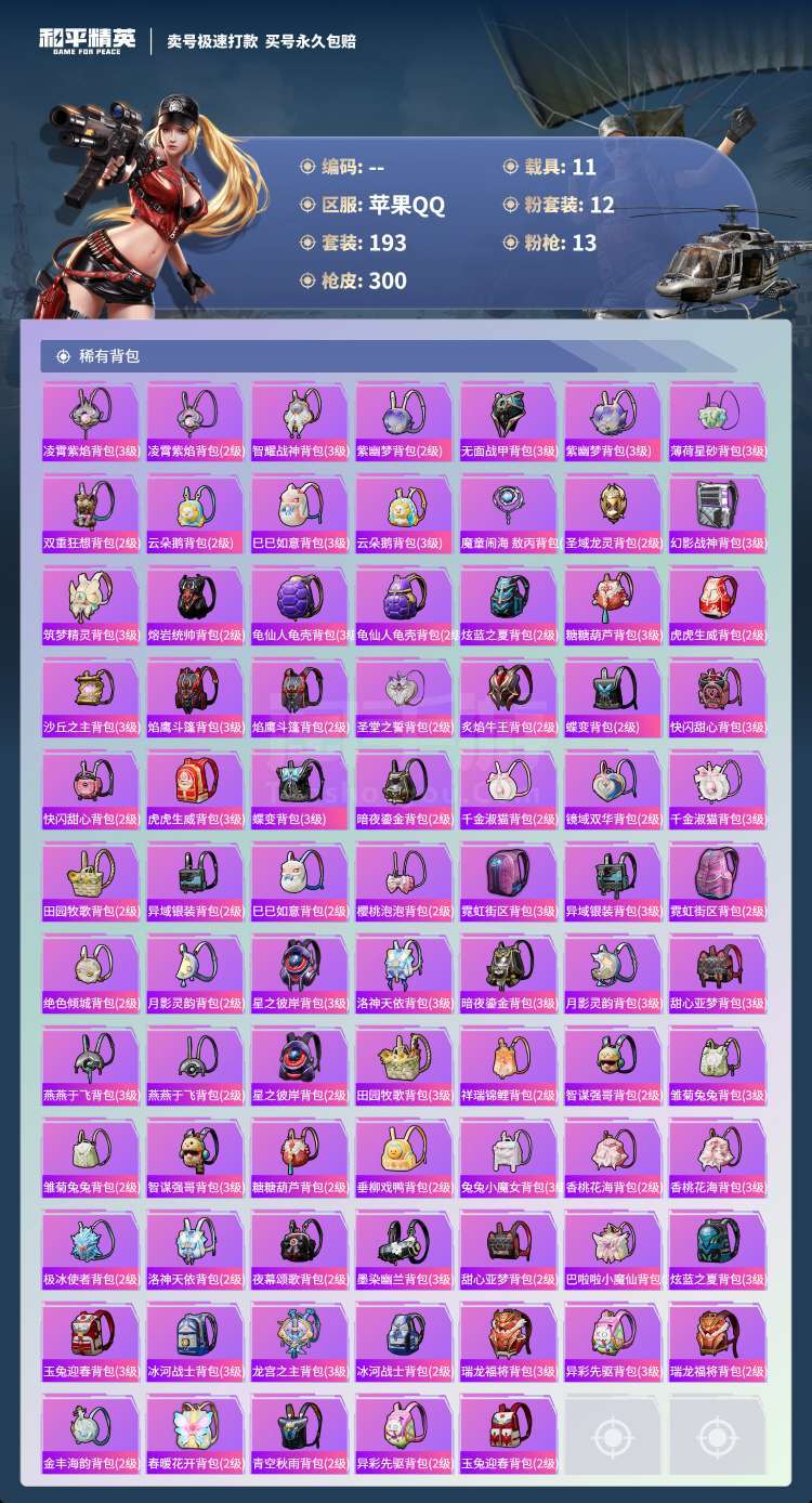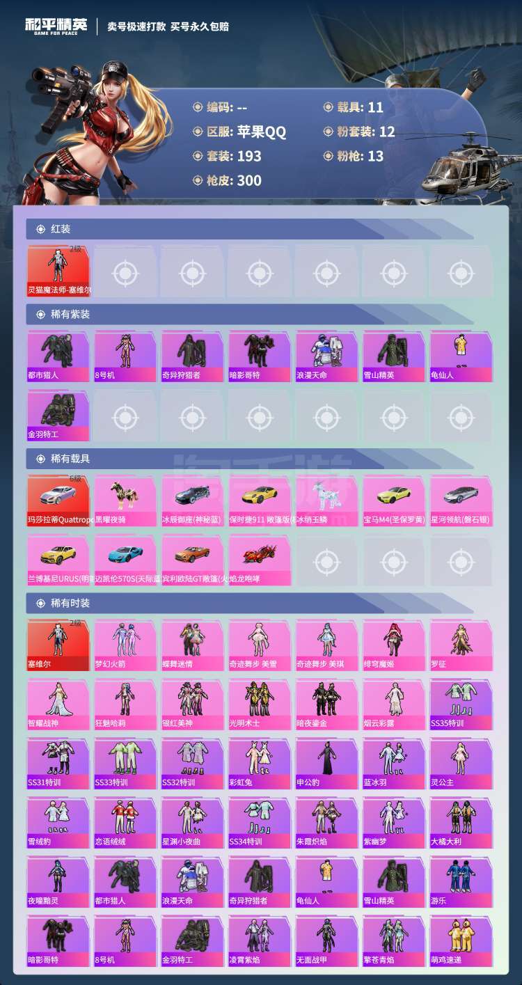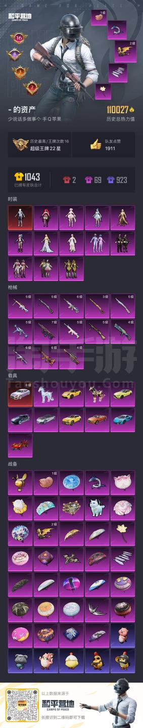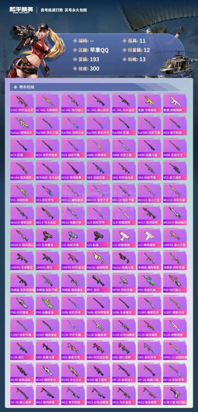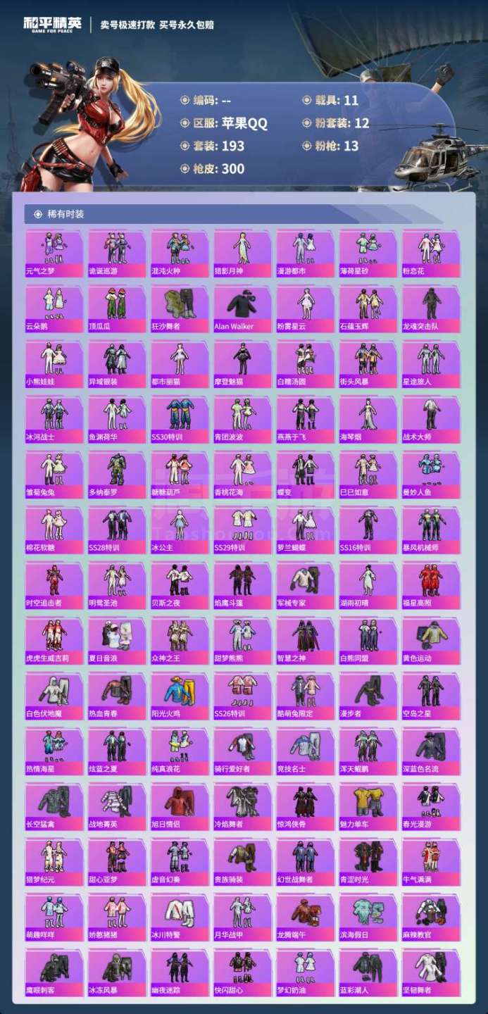 hs45531 苹果手Q-16王牌印记-12粉装-13特效枪-11载具-110110热力值-193套