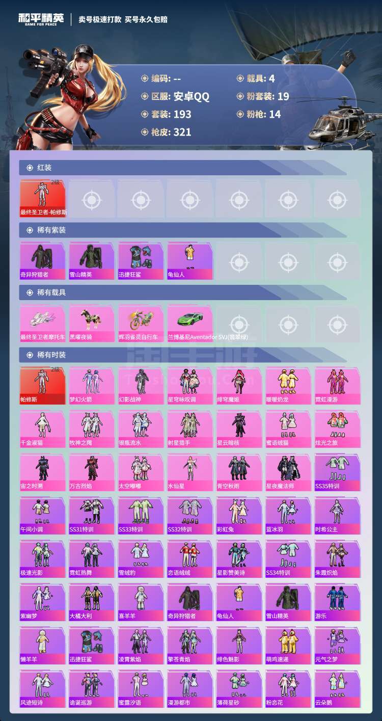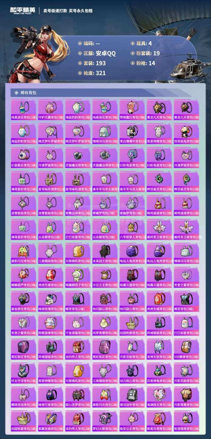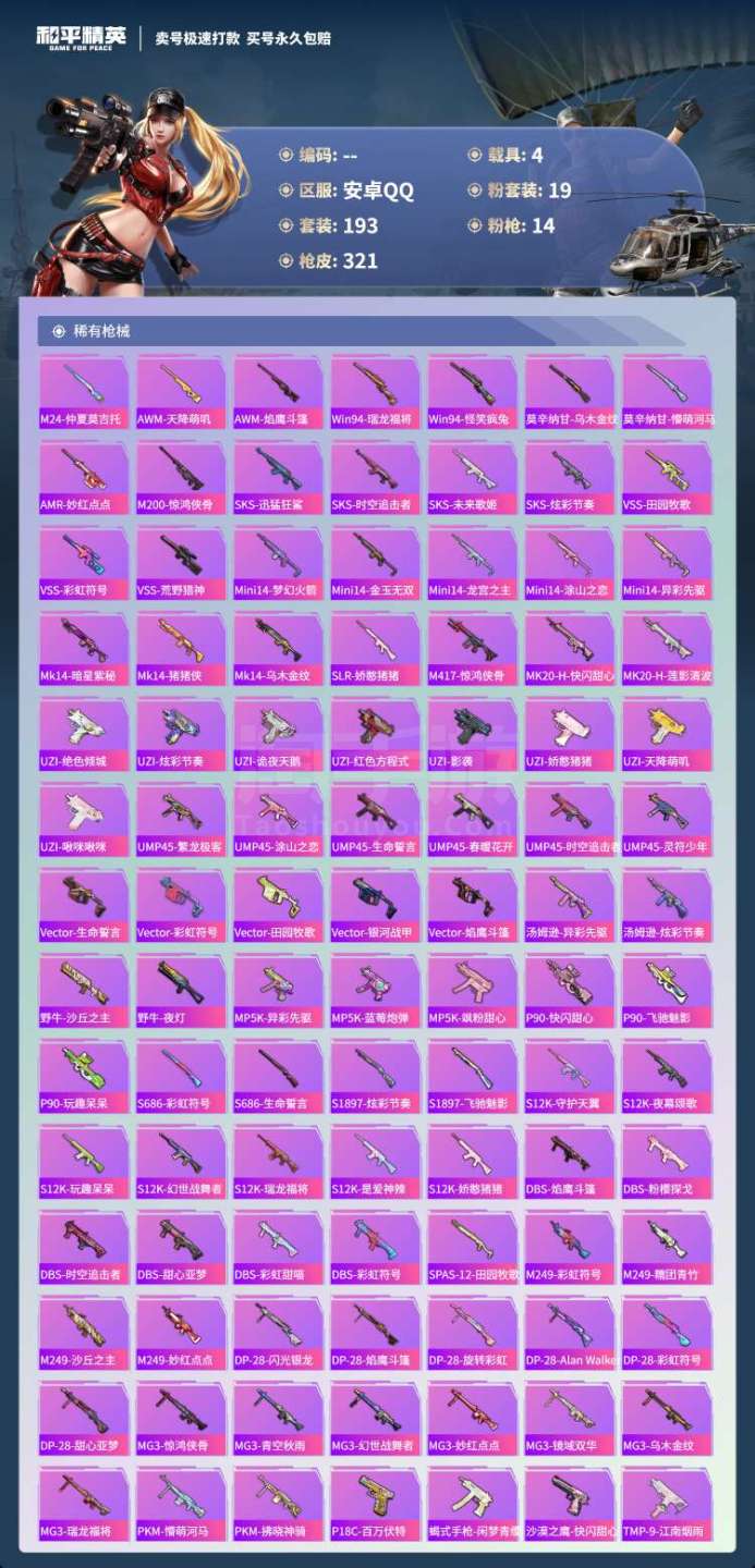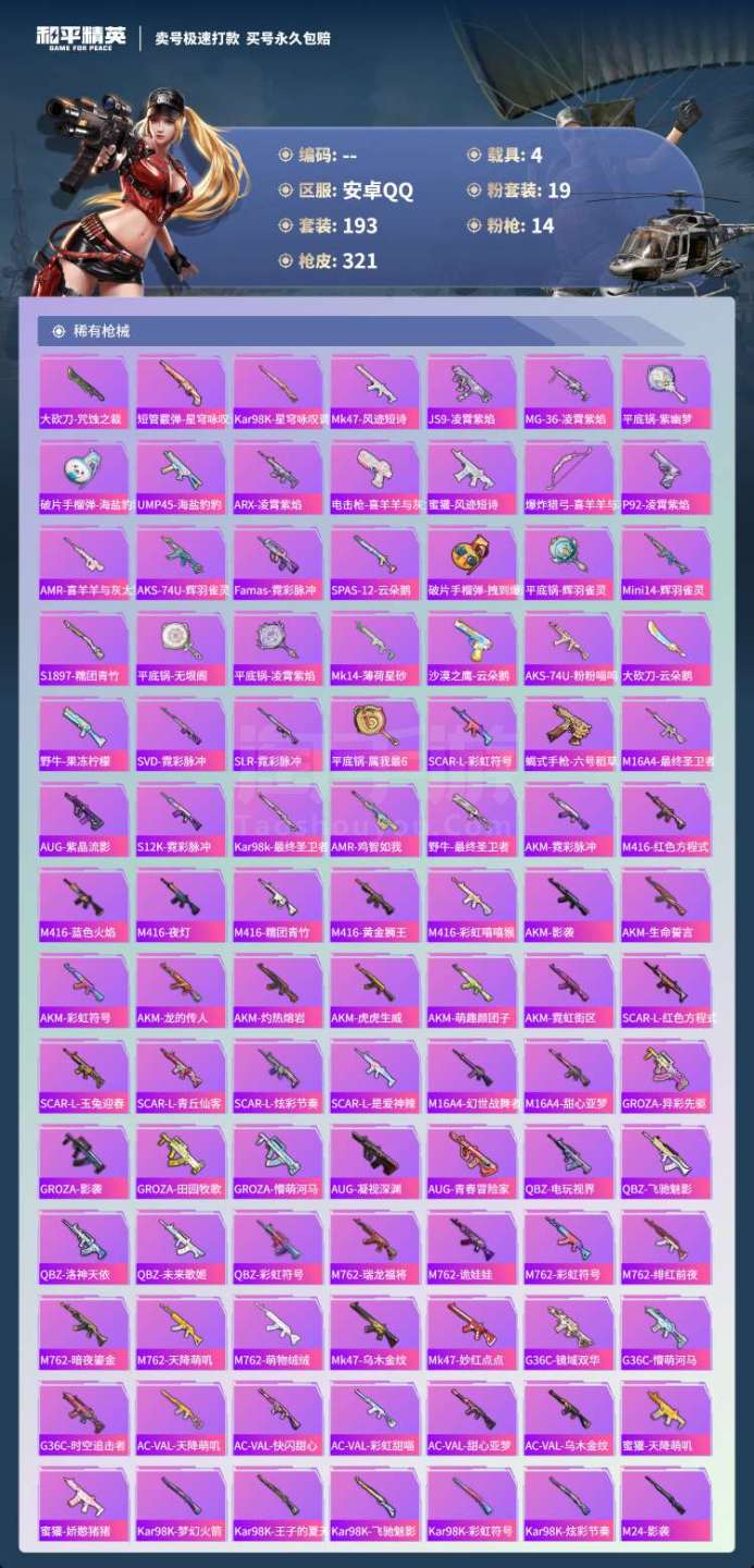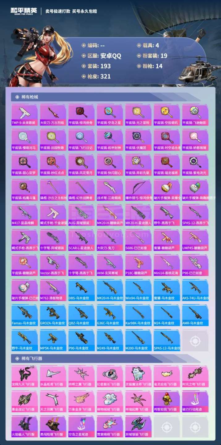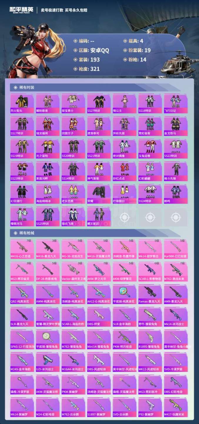 hs45557 安卓手Q-19王牌印记-19粉装-14特效枪-4载具-120872热力值-193套装