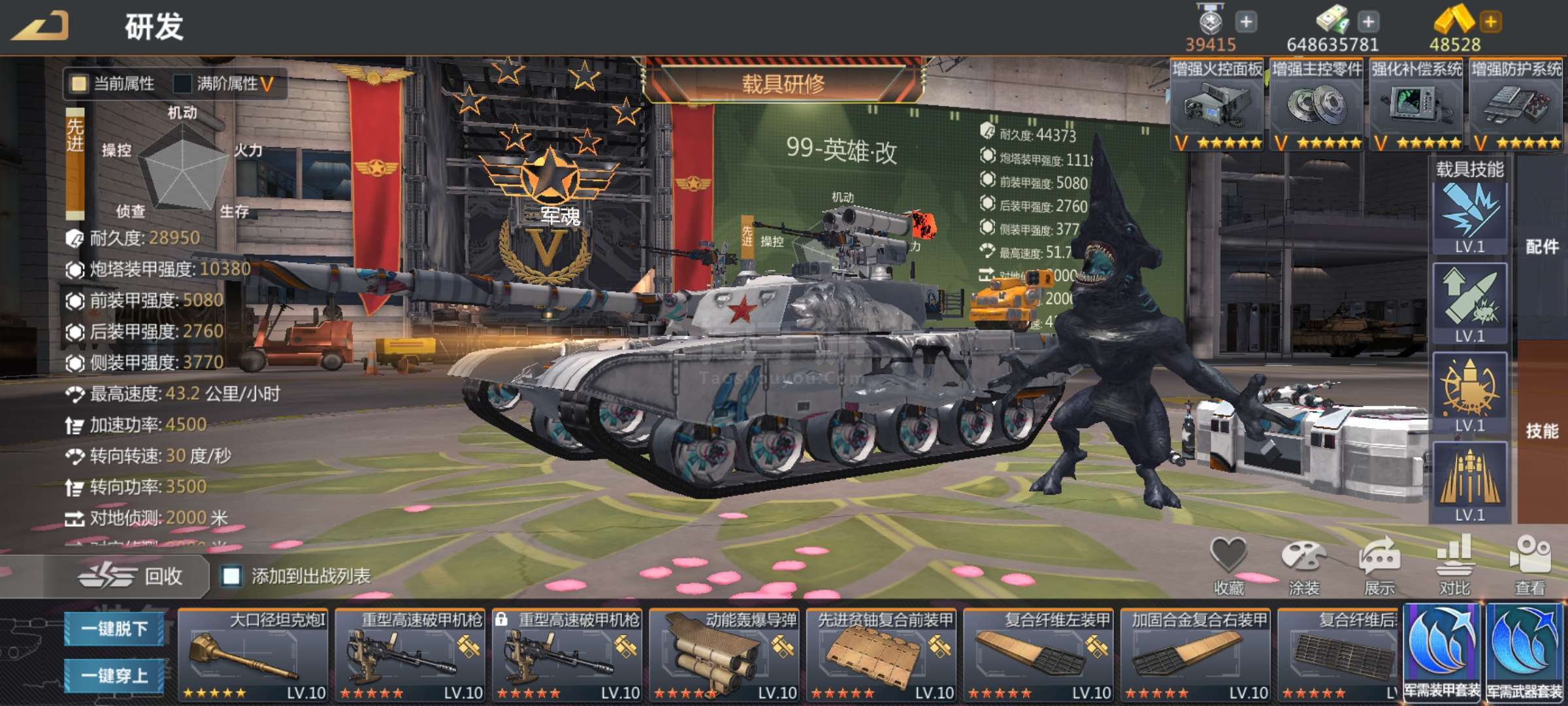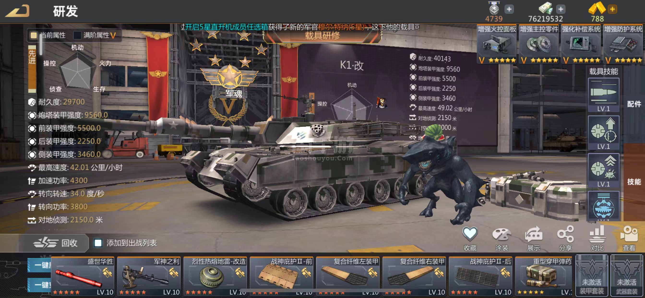 科技满组件24全开6个五星军魂部件全红9个M1A2满改99英雄满K1蓝图技能满升A2S二阶段带娃没空