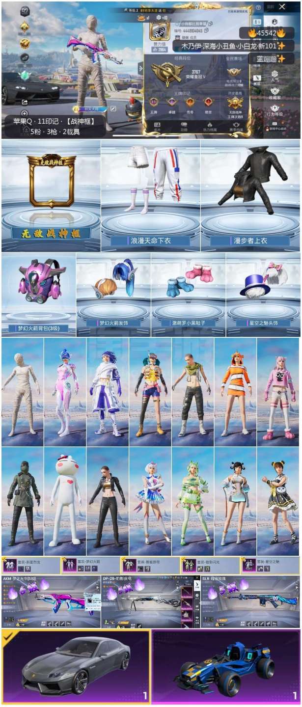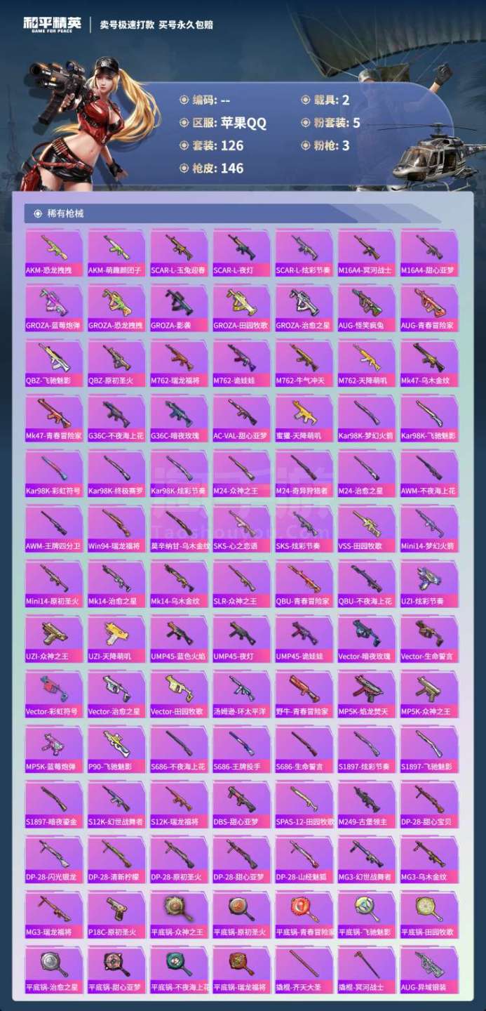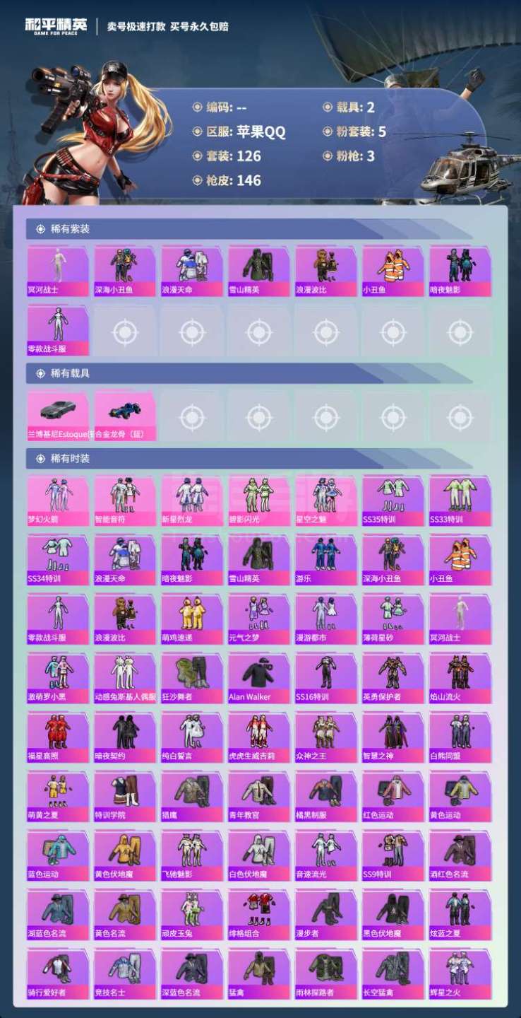 hs45542 苹果手Q-11王牌印记-有战神框-5粉装-3特效枪-2载具-45710热力值-126