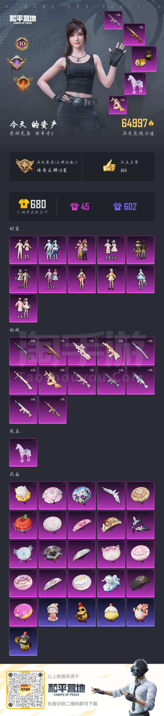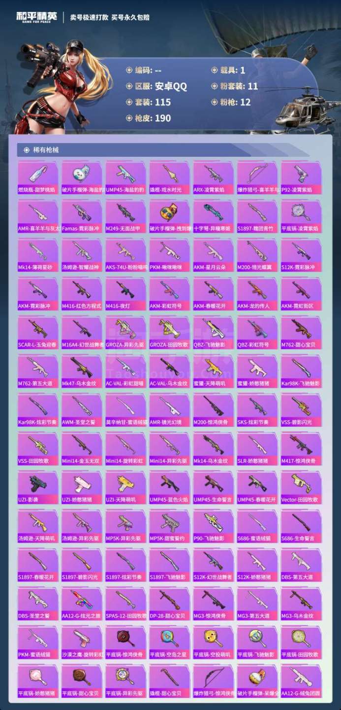 hs45528 安卓手Q-10王牌印记-11粉装-12特效枪-1载具-65102热力值-115套装-