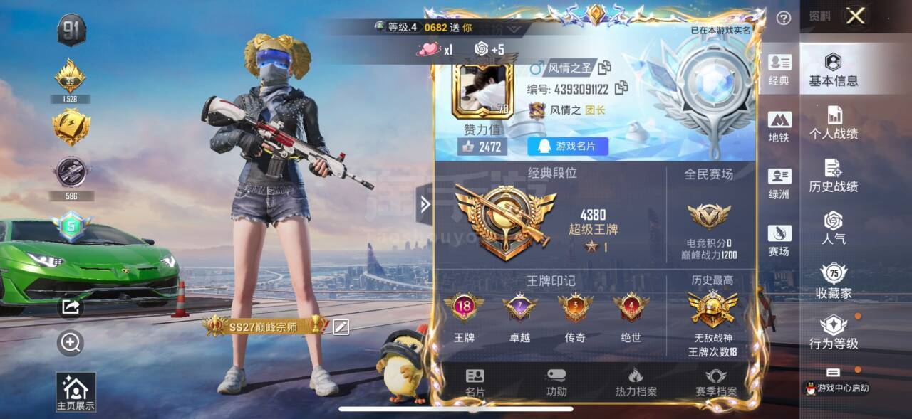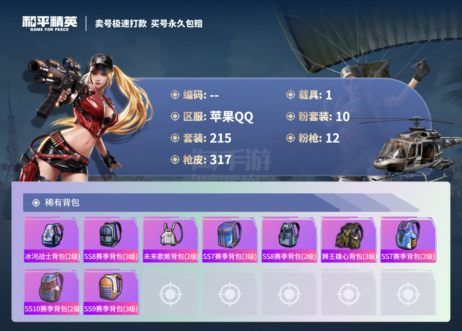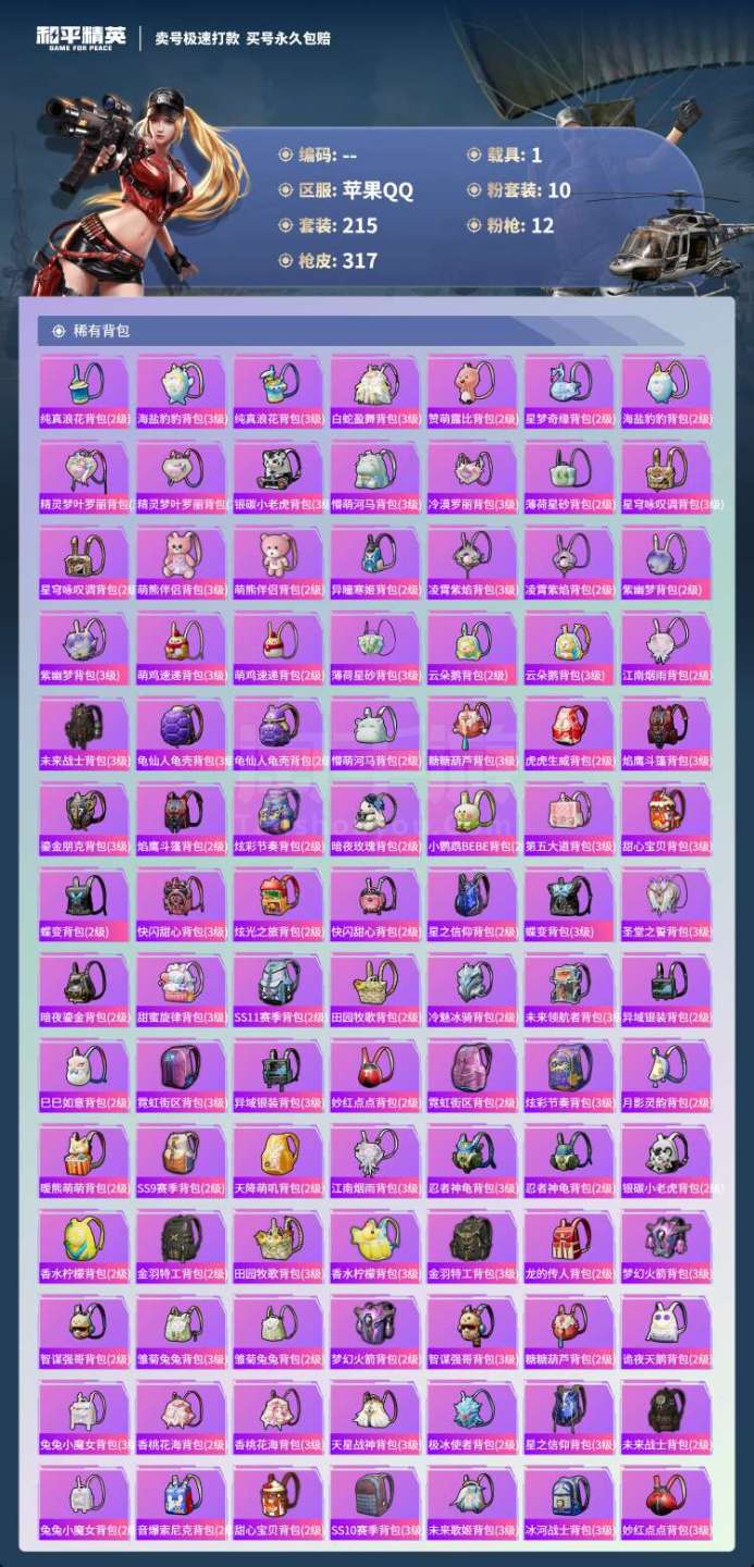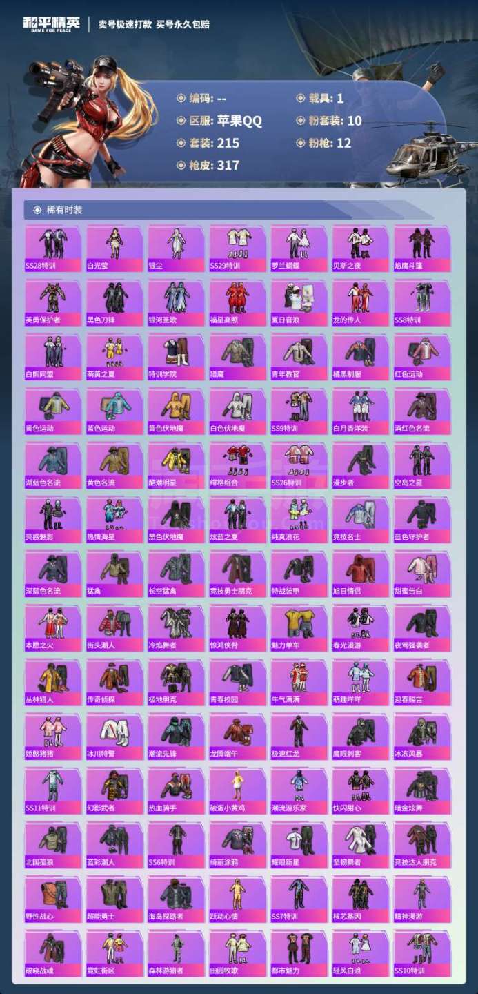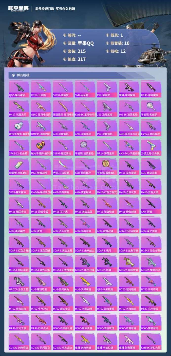 hs45562 苹果手Q-18王牌印记-有战神框-10粉装-12特效枪-1载具-93278热力值-2
