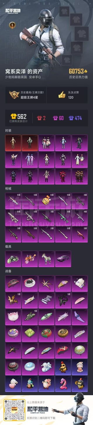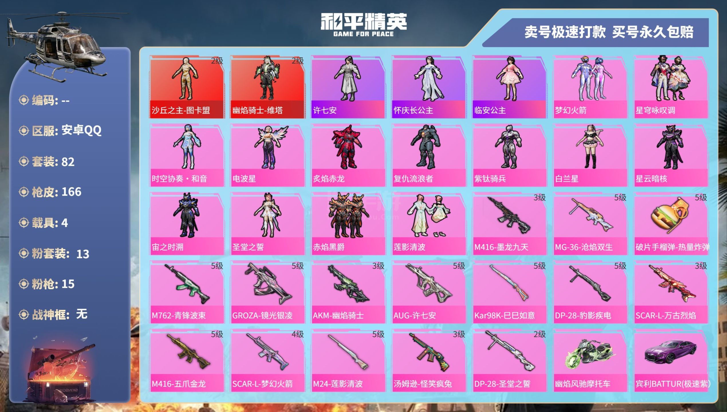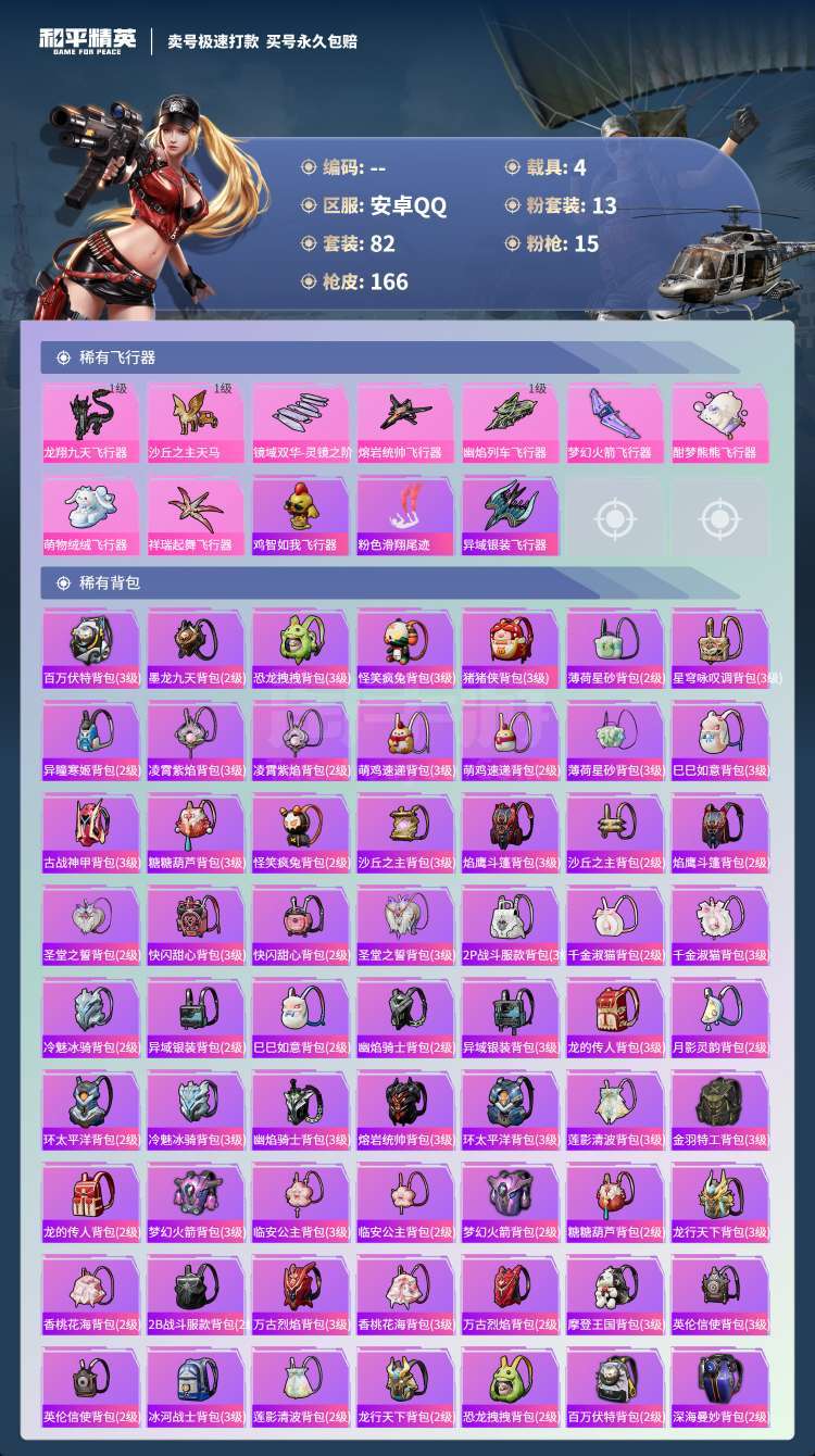 hs45548 安卓手Q-1王牌印记-13粉装-15特效枪-4载具-60932热力值-82套装-16