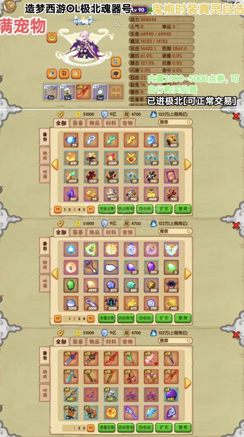 造梦西游OL极北起步号已进极北、可正常交易点券!全角色都有!