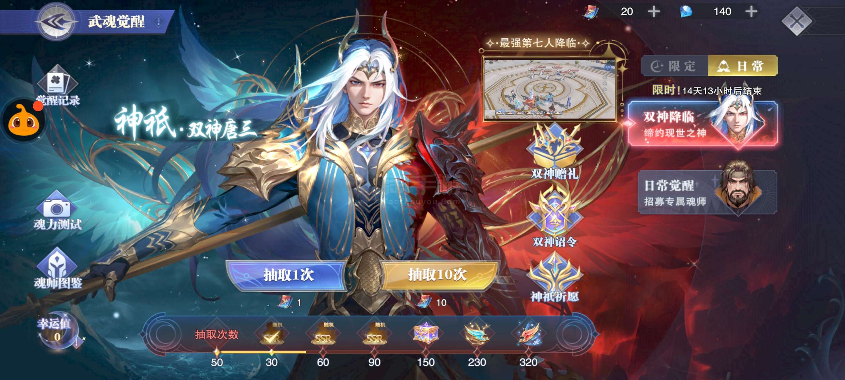 斗罗大陆:魂师对决【安卓官方】新区60抽sp+尘心,50抽sp+双神唐三王林踏白云都有。