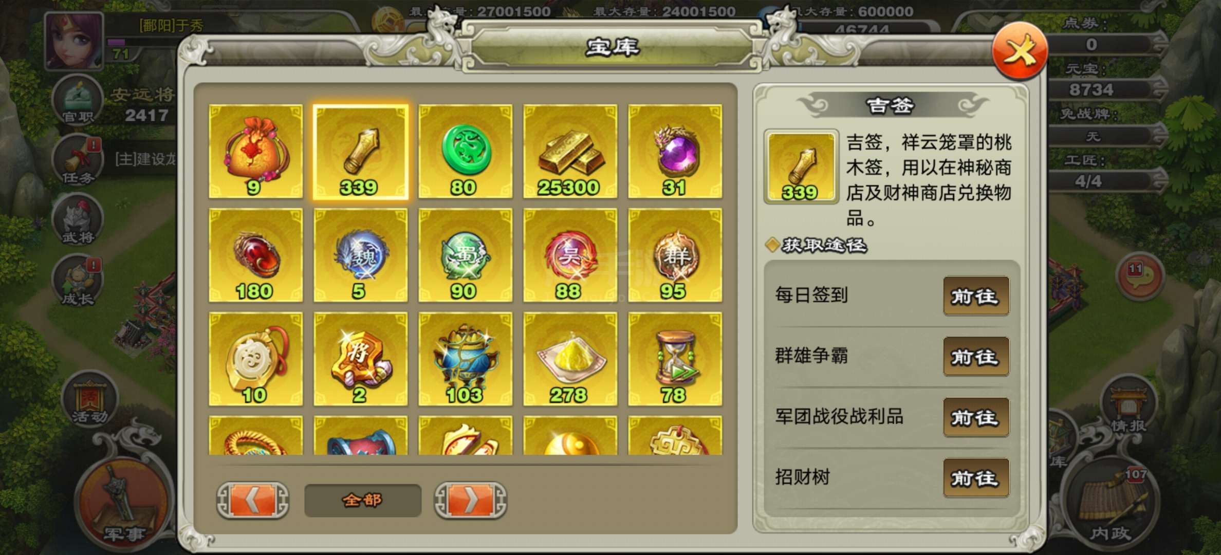 君临天下【安卓官方】1传说339吉签27根羽毛8734元宝