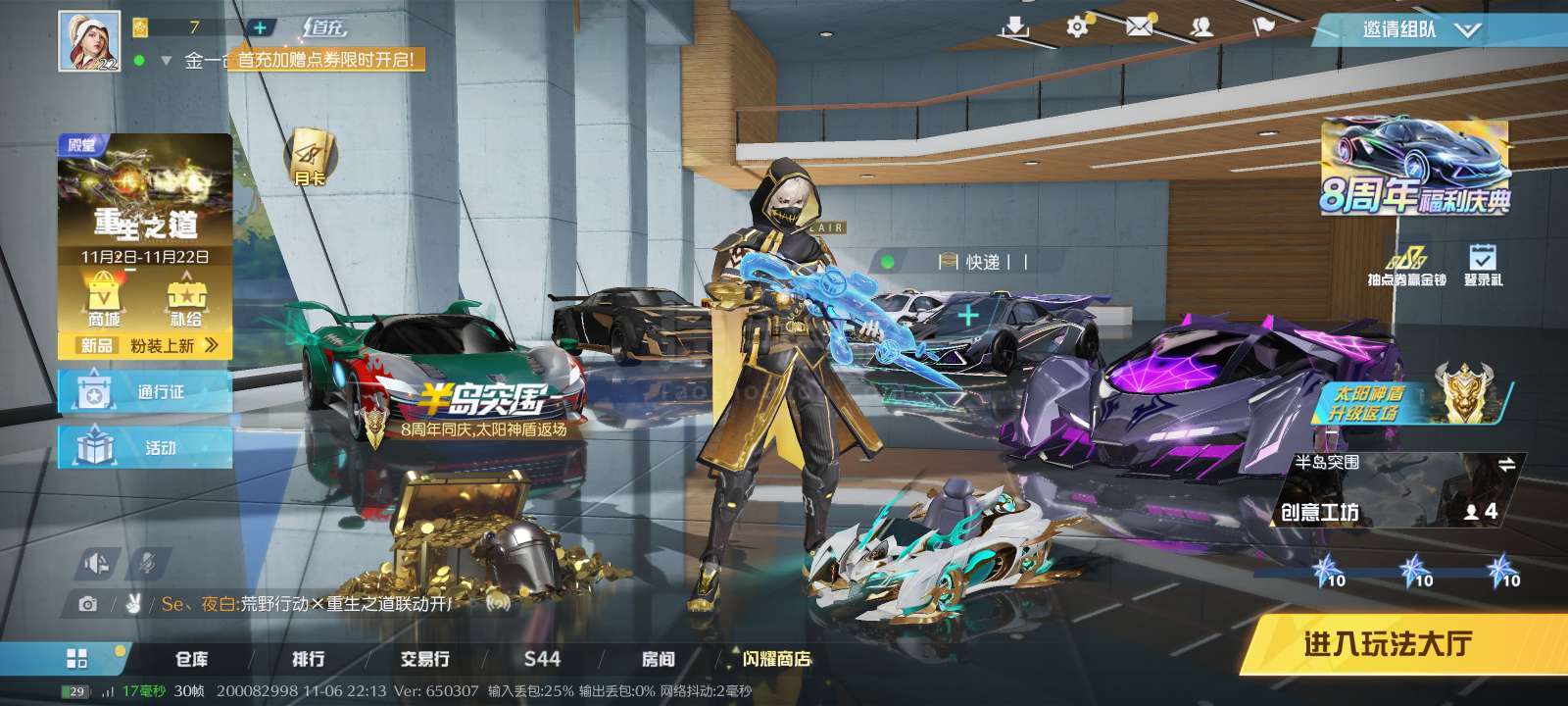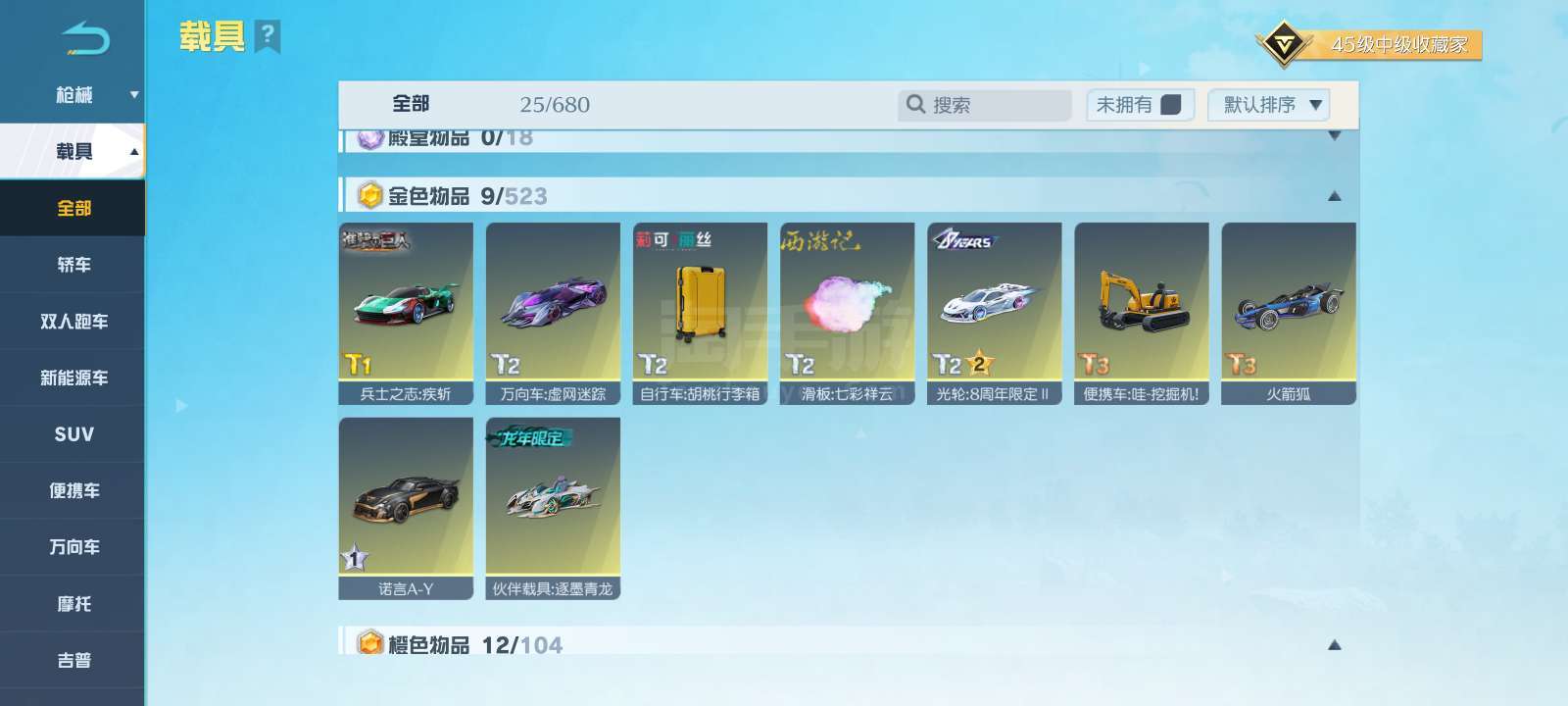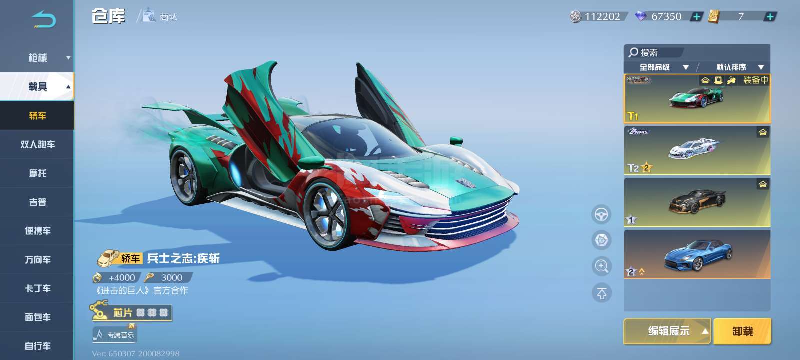 荒野行动pc电脑端手机端进击的巨人T1跑车,万向金车 七彩祥云滑板