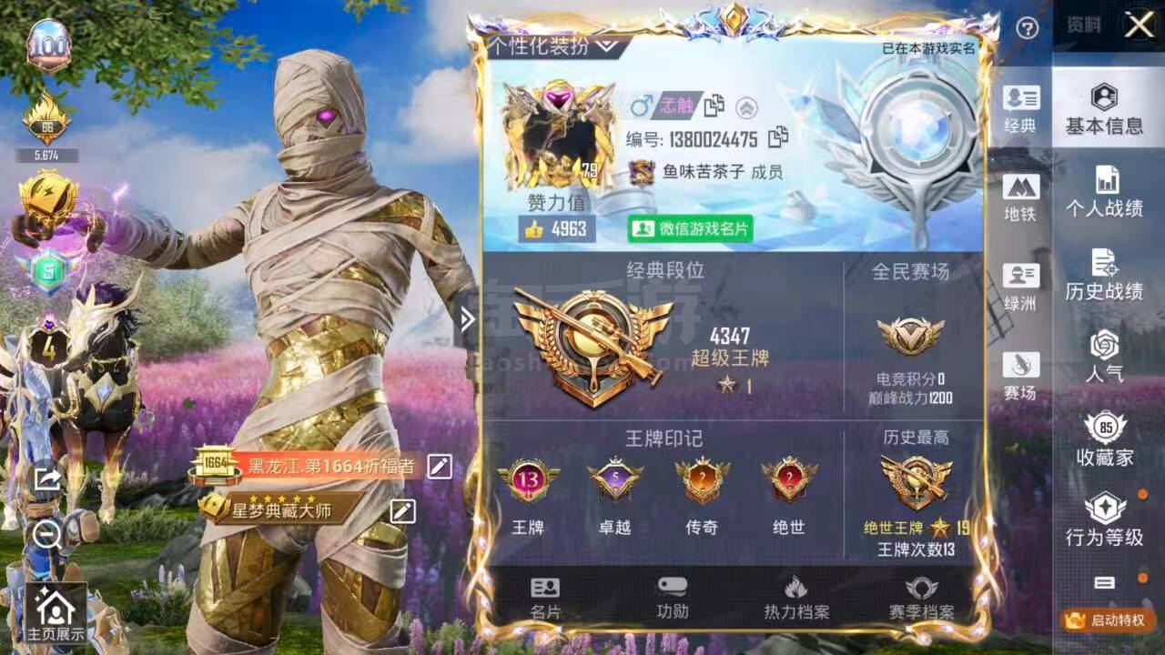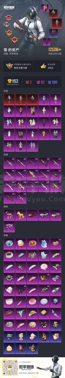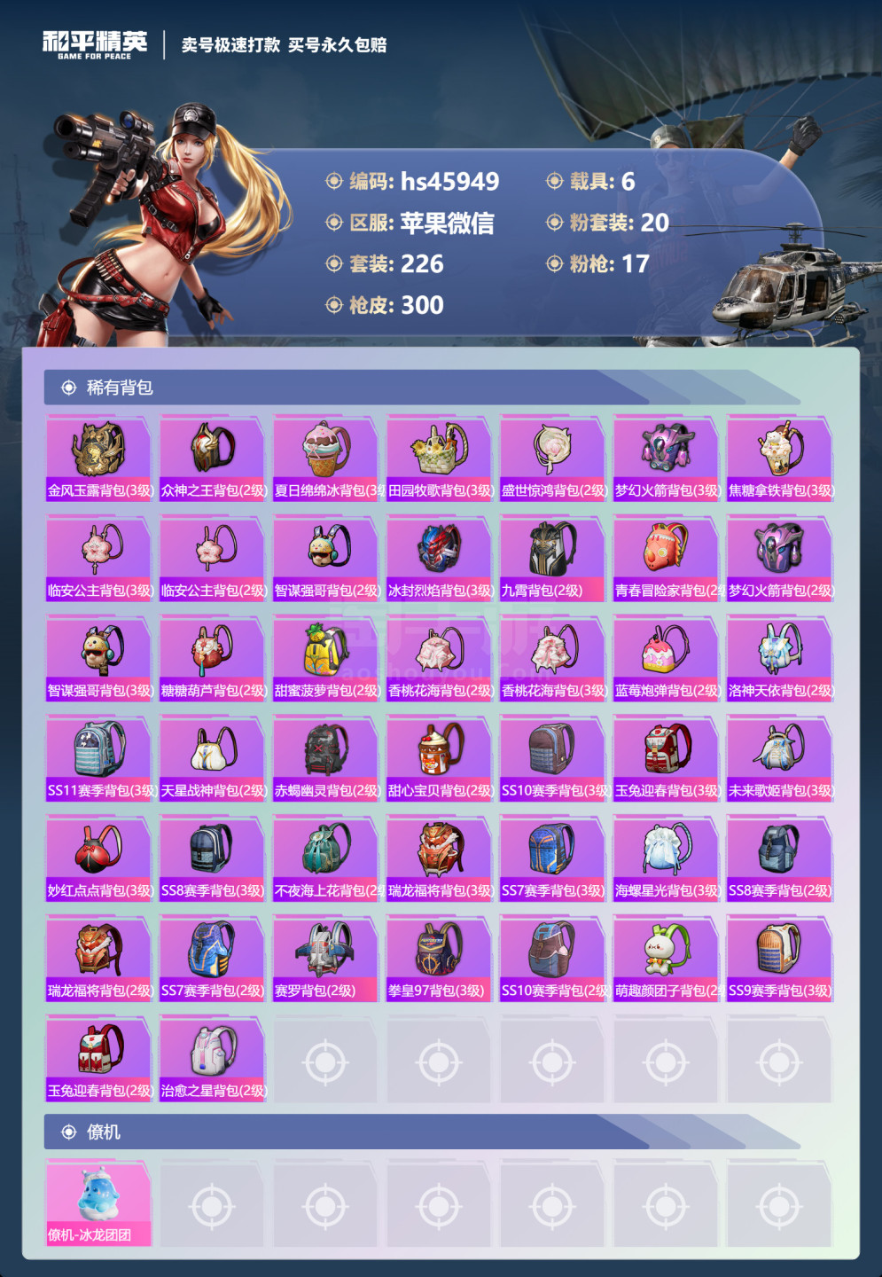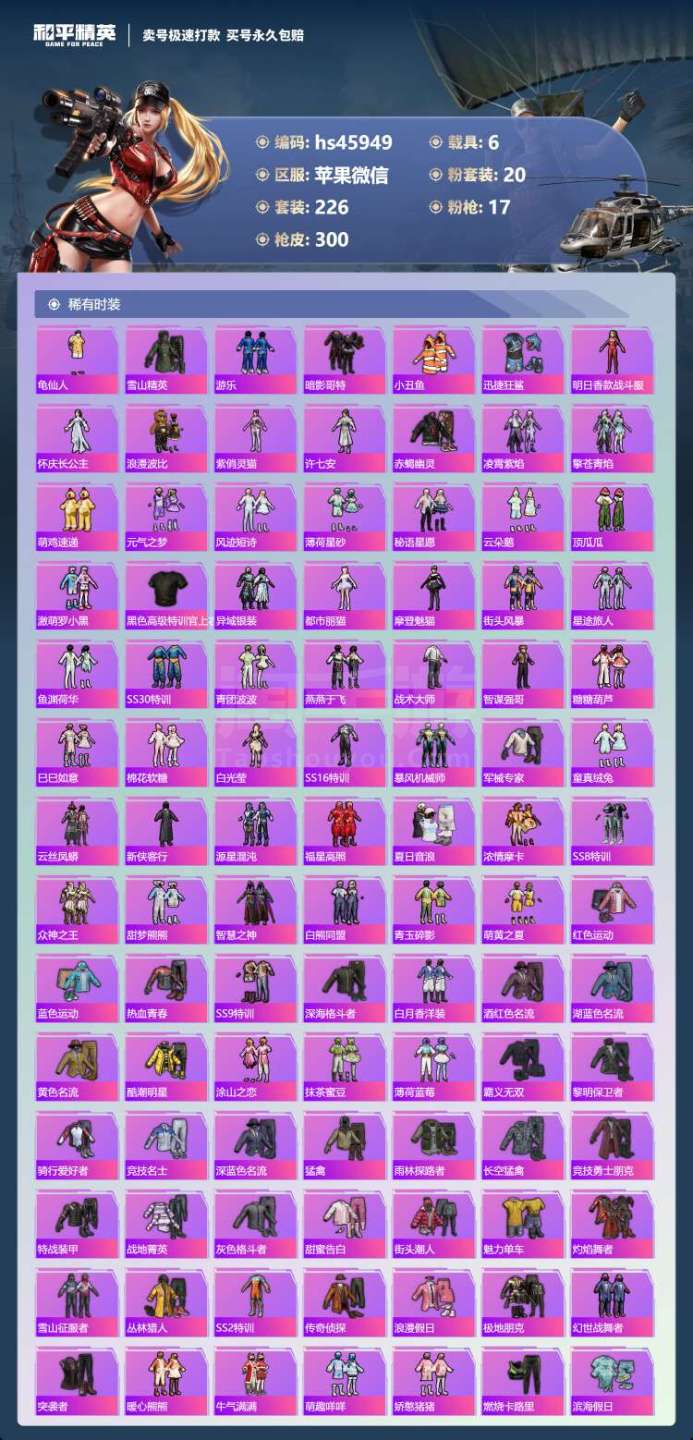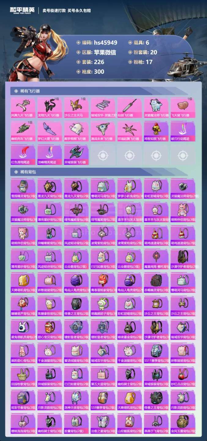 hs45949 苹果微-13王牌印记-20粉装-17特效枪-6载具-125316热力值-226套装