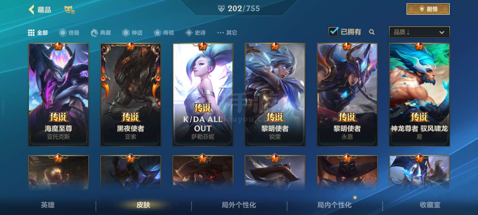 英雄联盟手游(lol)【安卓QQ】21传说 91史诗 202皮肤 130英雄