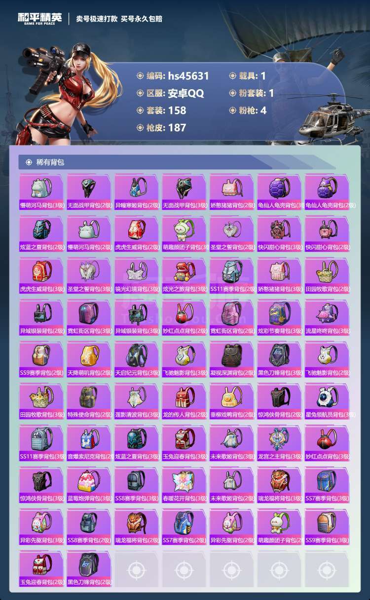 hs45631 安卓手Q-11王牌印记-1粉装-4特效枪-1载具-57314热力值-158套装-18