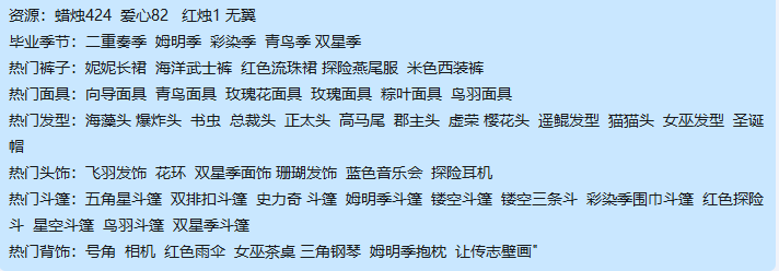 热门裤子:妮妮长裙 海洋武士裤 红色流珠裙 探险燕尾服 米色西装裤
