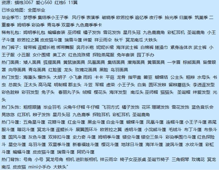 毕业季节:梦想季 集结季小王子季 风行季 表演季 破晓季 欧若拉季 追忆季 夜行季 拾光季 归巢季 筑巢季 二重奏季 姆明季 彩染季 青鸟季 双星季 九色鹿季季卡