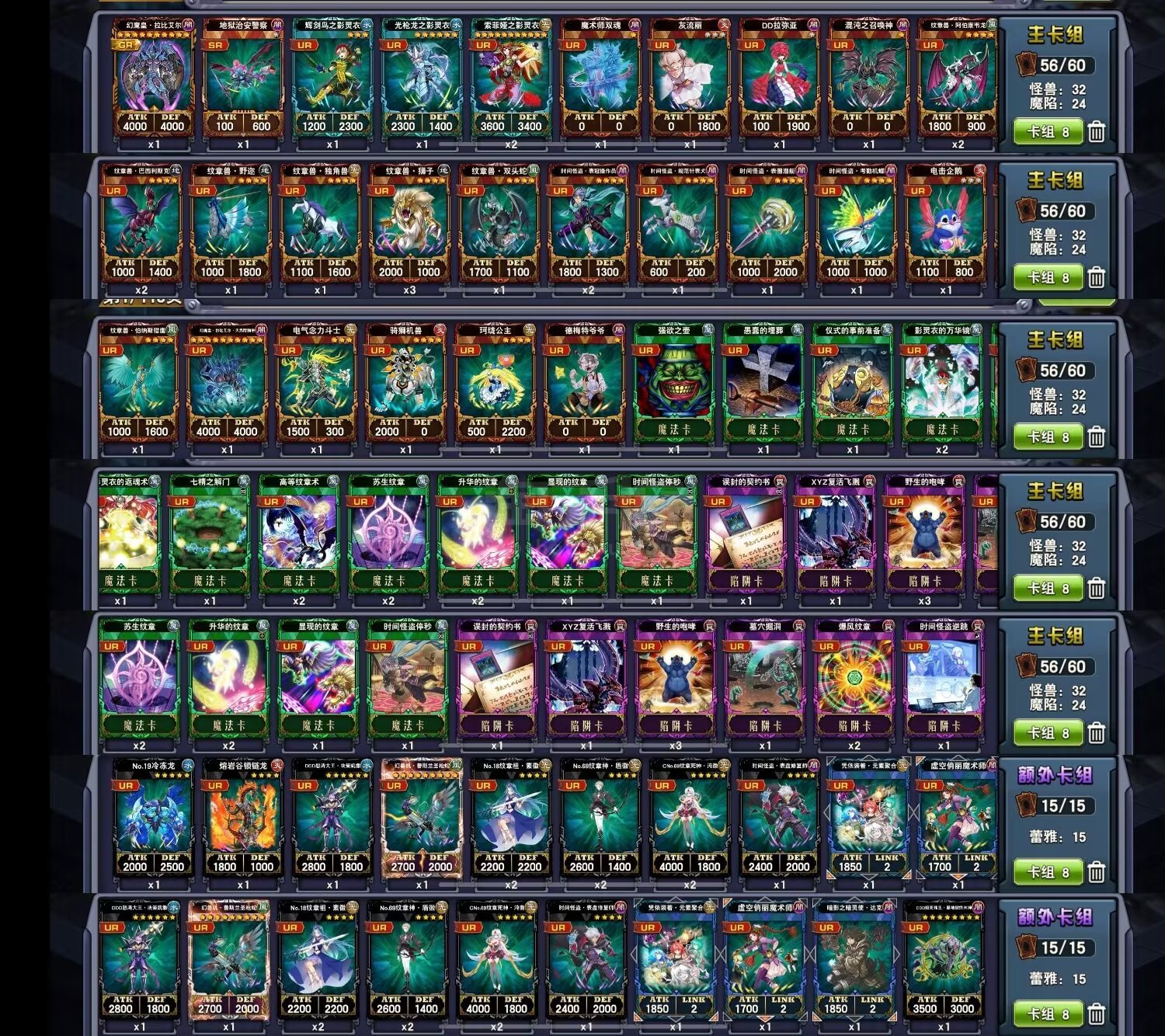 金杯14个,成就7655,综合资源百万,圣蛇索菲亚黑神俏丽,卡组:贴纸,海晶削卡,黑羽削血,纹章,天