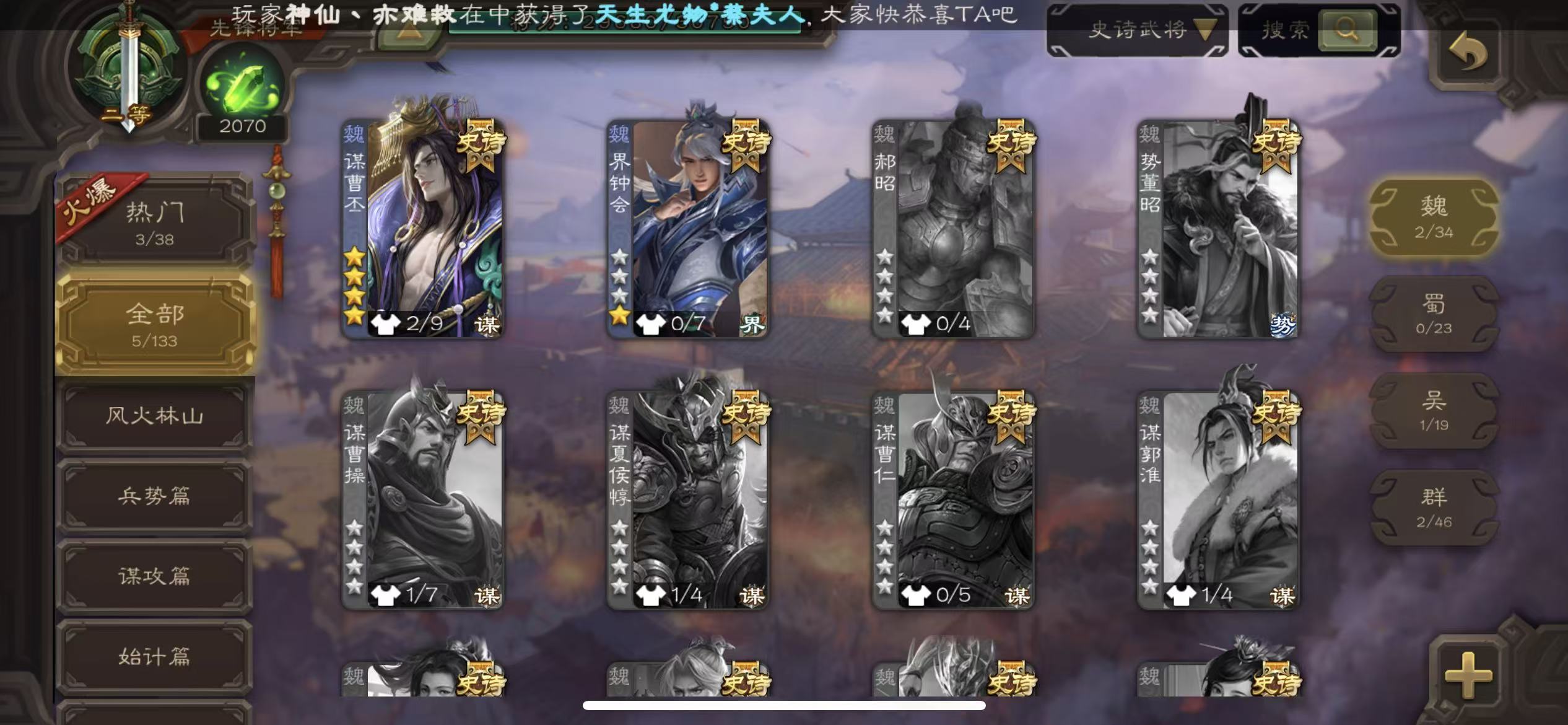 史诗武将数量: