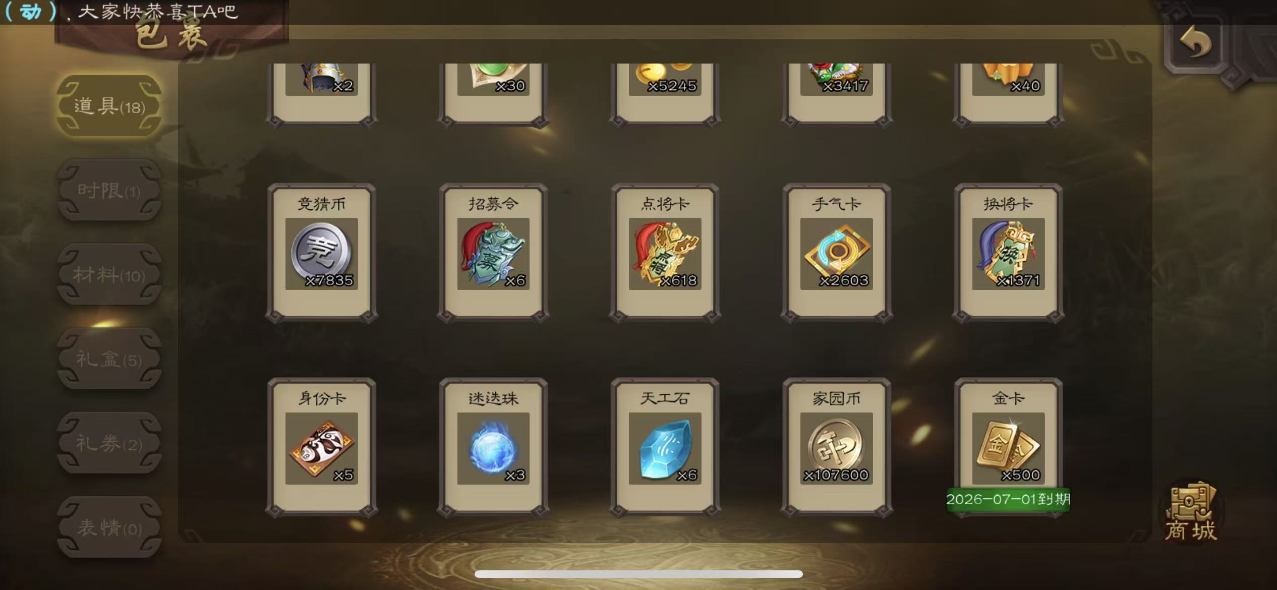 中军动态留赞动态花花张星彩戏子白马庞德公三卡