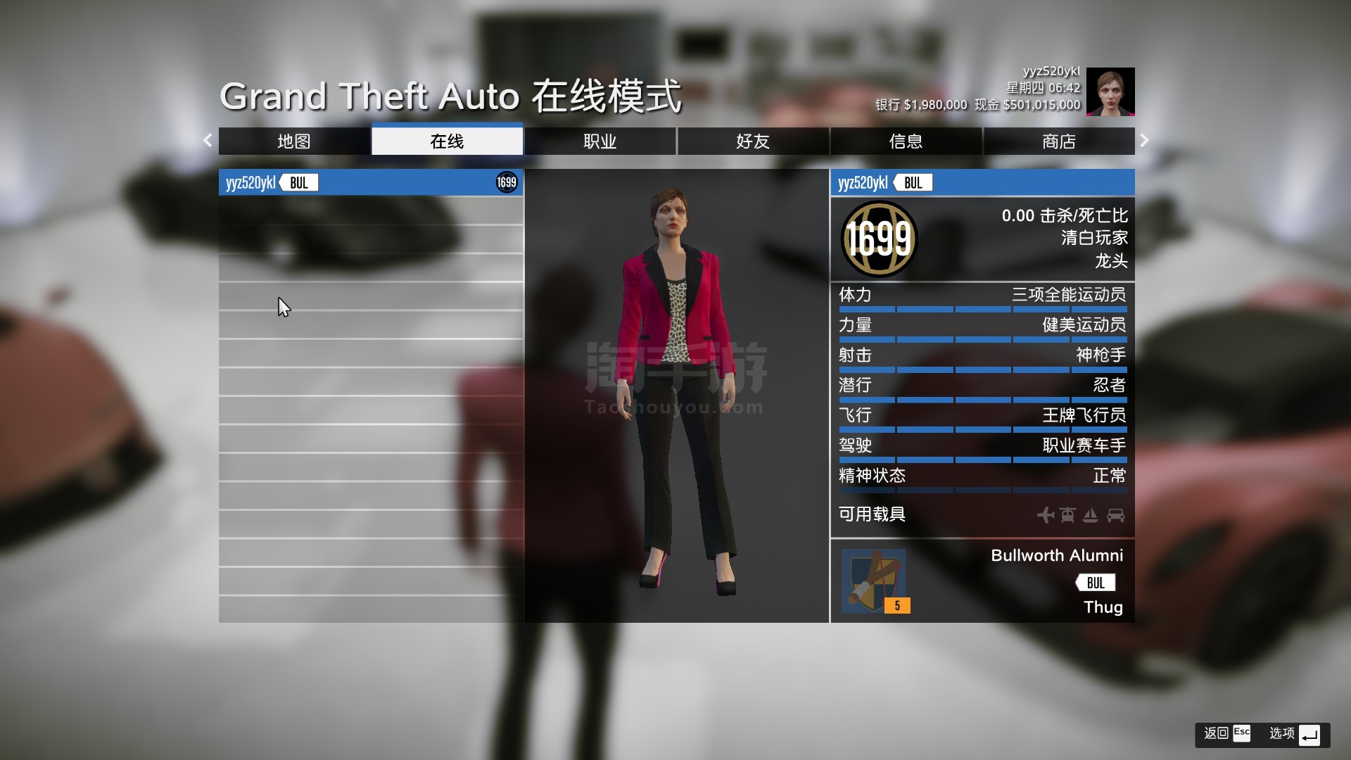 GTA增强版本线上模式拥有5亿多金币随便花,等级1699,满属性全解锁,地堡51项科技解锁,超多车库