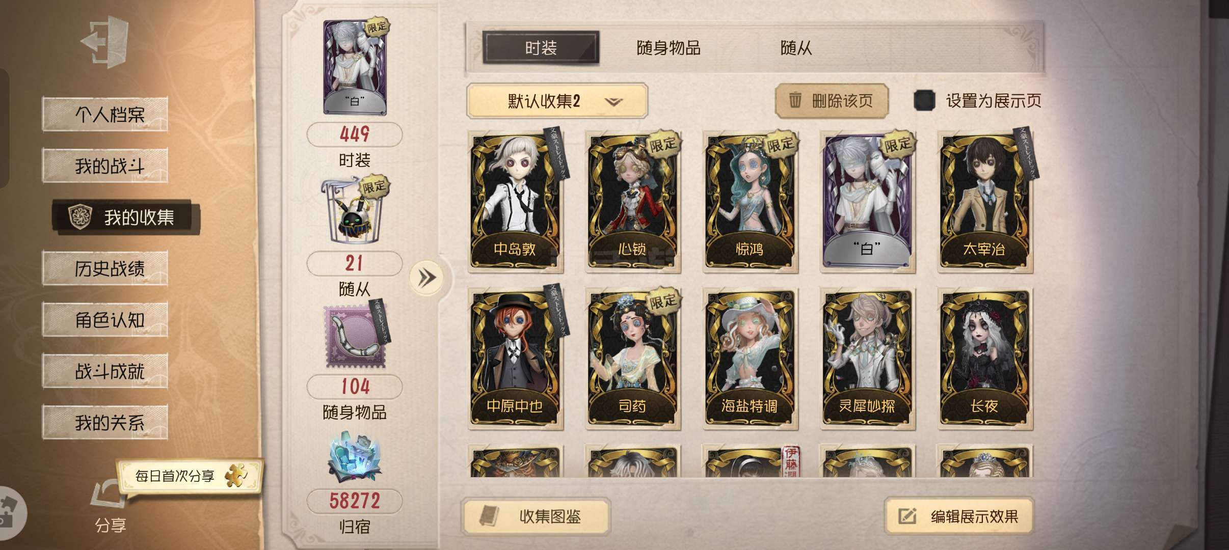 第五人格【安卓华为】先知白幻灯师限定心锁惊鸿太宰中原中也中岛敦紫薯三万二,有早期推理之径绝版皮肤,紫皮解锁卡两张