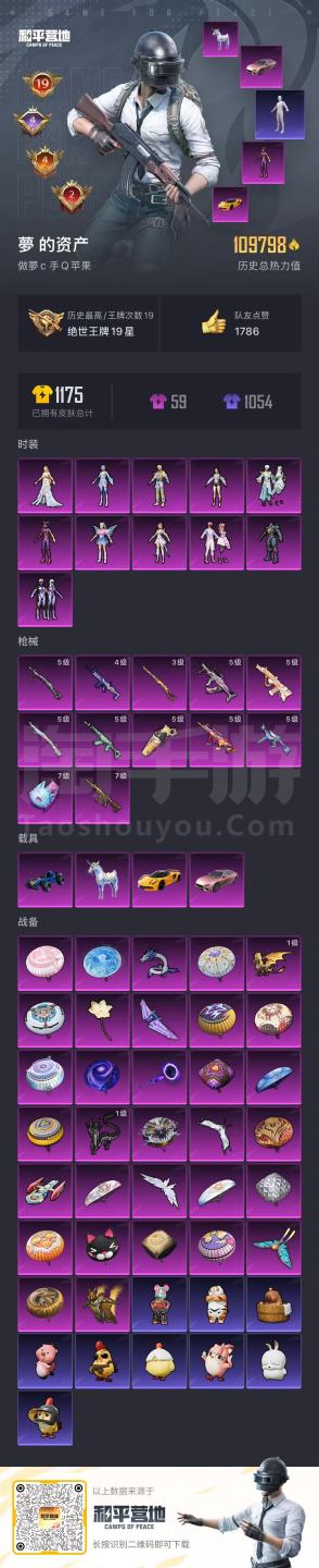 和平精英【苹果QQ】4载具,冥河战士,都市猎人,三螳螂。2个升级投掷物。小熊背包全套。