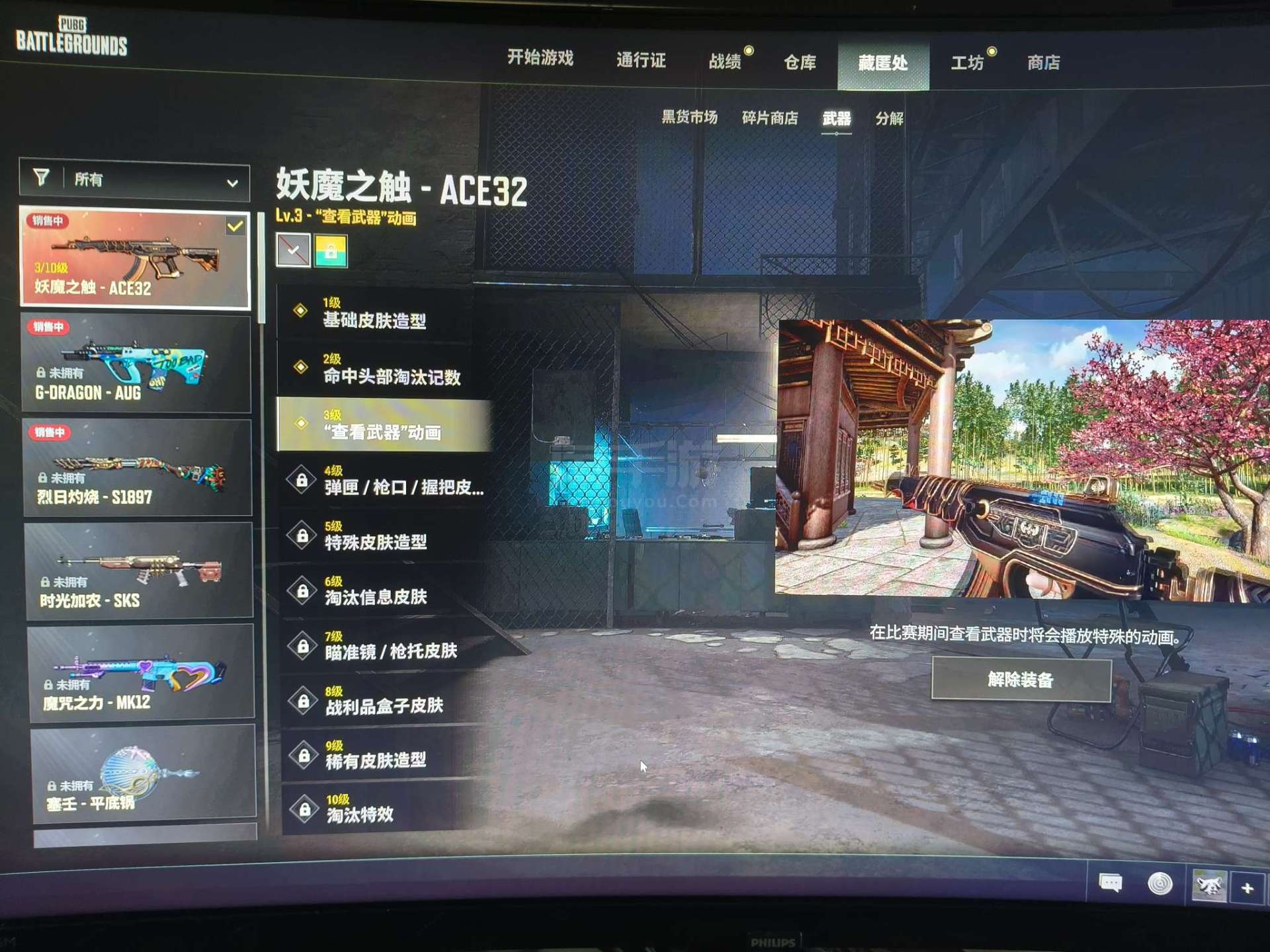 绝地求生(PUBG)【端游】三级妖魔之触ace32,80个枪皮