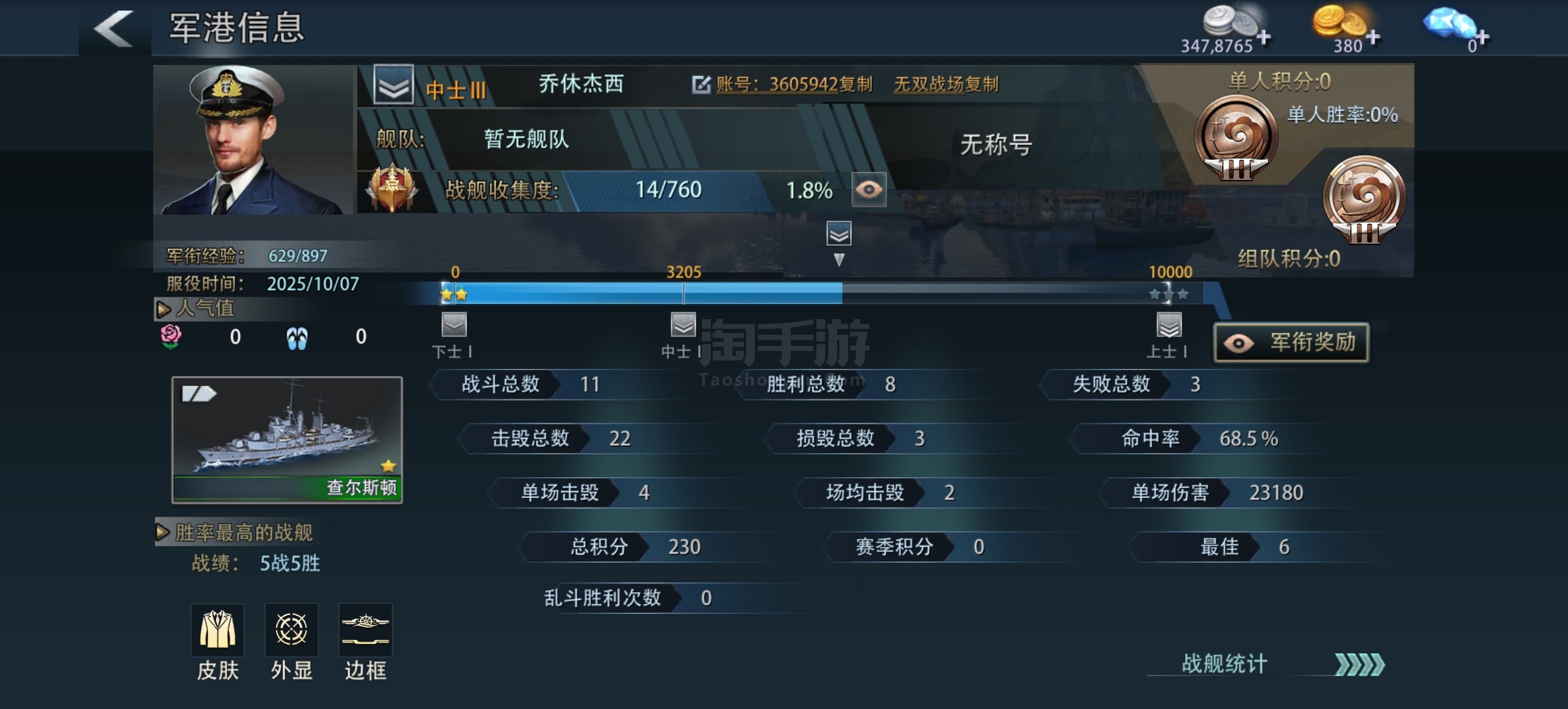 巅峰战舰【安卓其他】2025/10/7起的新号,梦魇潜艇,壳子一个