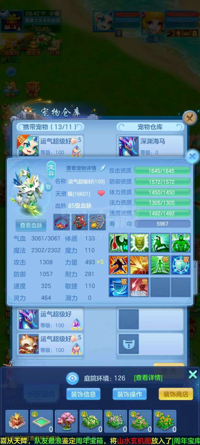 11 12段易 无仙兽 有内胆有神兽 多个满技能bb 1个成品孩子 1个满配怒龙坐骑 海景房