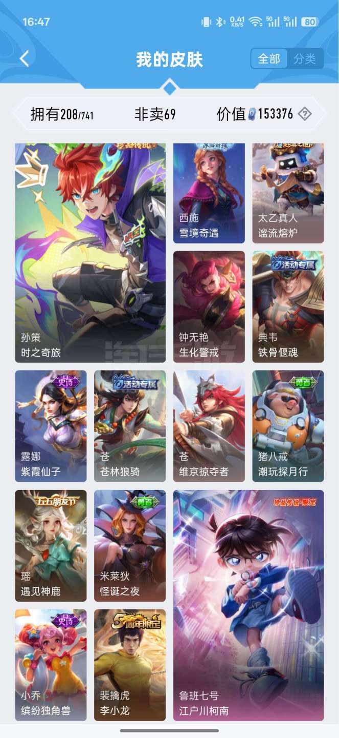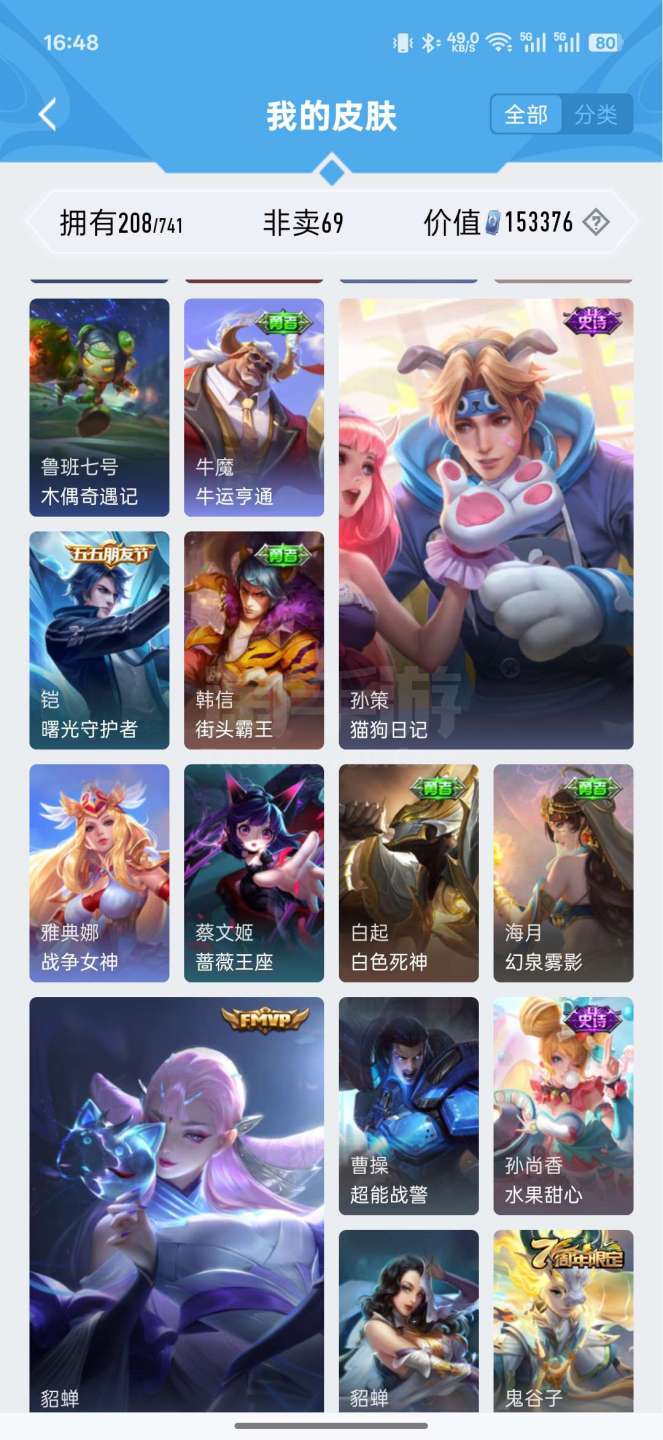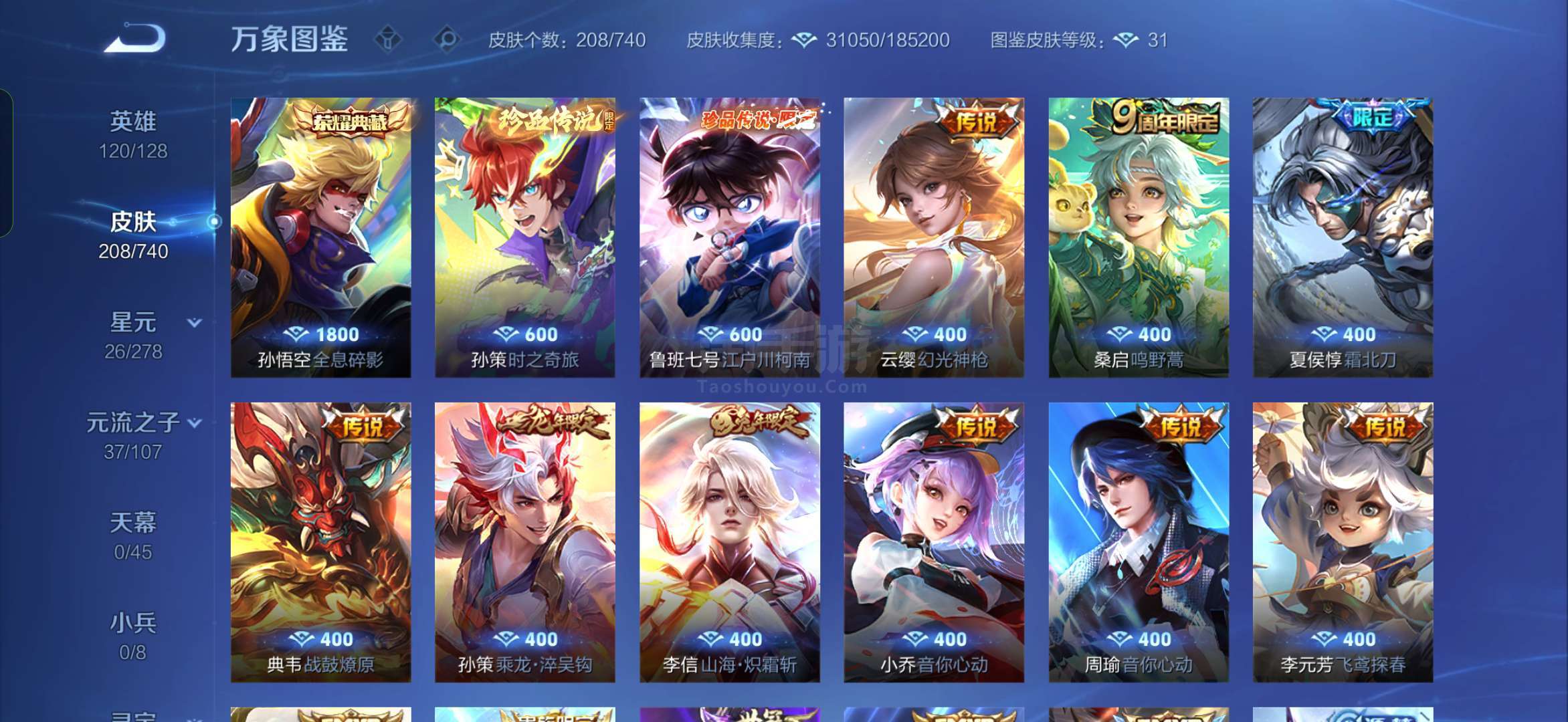 王者荣耀【安卓QQ】猴子至尊宝荣耀典藏,孙策珍品传说,柯南还有多传说
