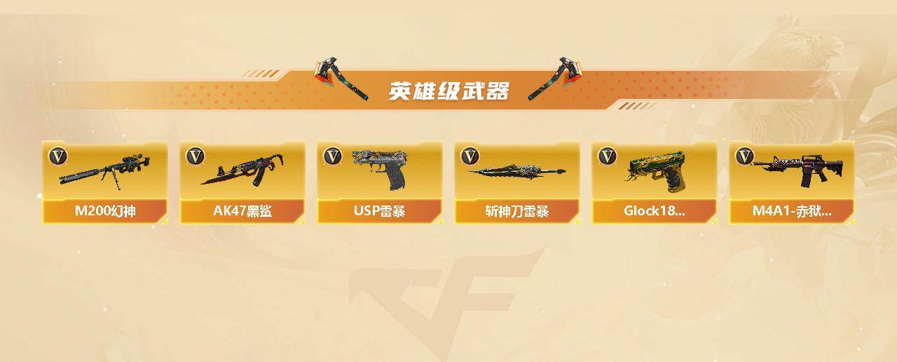 【热门武器】:QBZ03-金色蔷薇,M200-幻神,死亡之眼,毒蜂,M4A1-黑骑士,汤姆逊-烈龙*6,RPK-盘龙*6,加特林-炼狱,斯泰尔-蝴蝶,USP-雷暴,沙鹰-修罗*5,黄金猫猫手套-白鲨