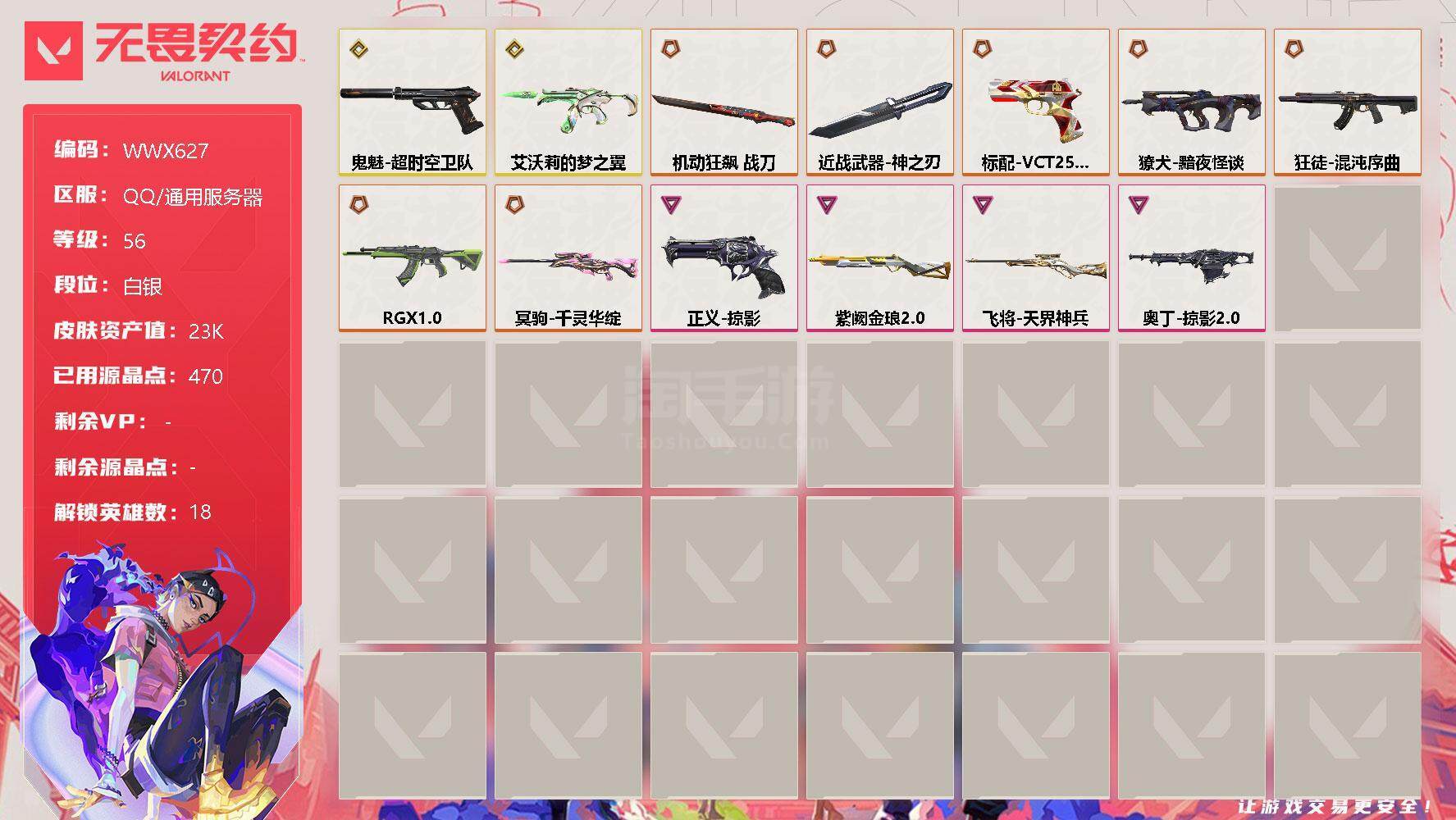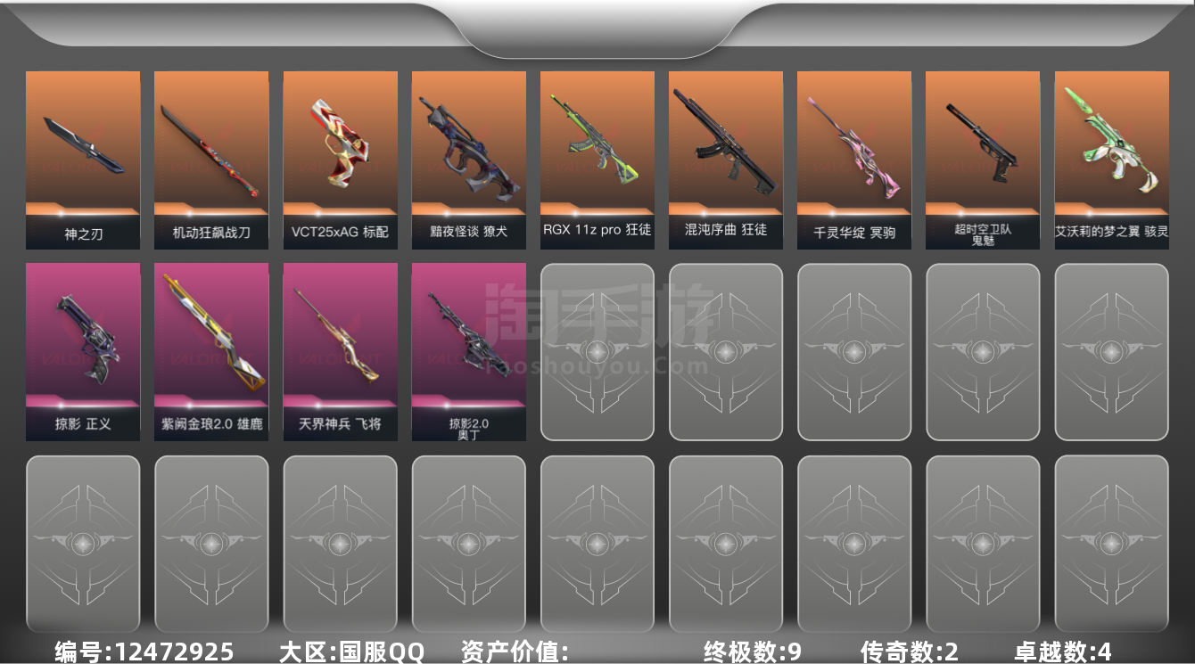终极*9/传奇*2/卓越*4/皮肤*39/等级*56/段位:白银/炼狱/暮蝶/铁臂/捷风/雷兹/不死