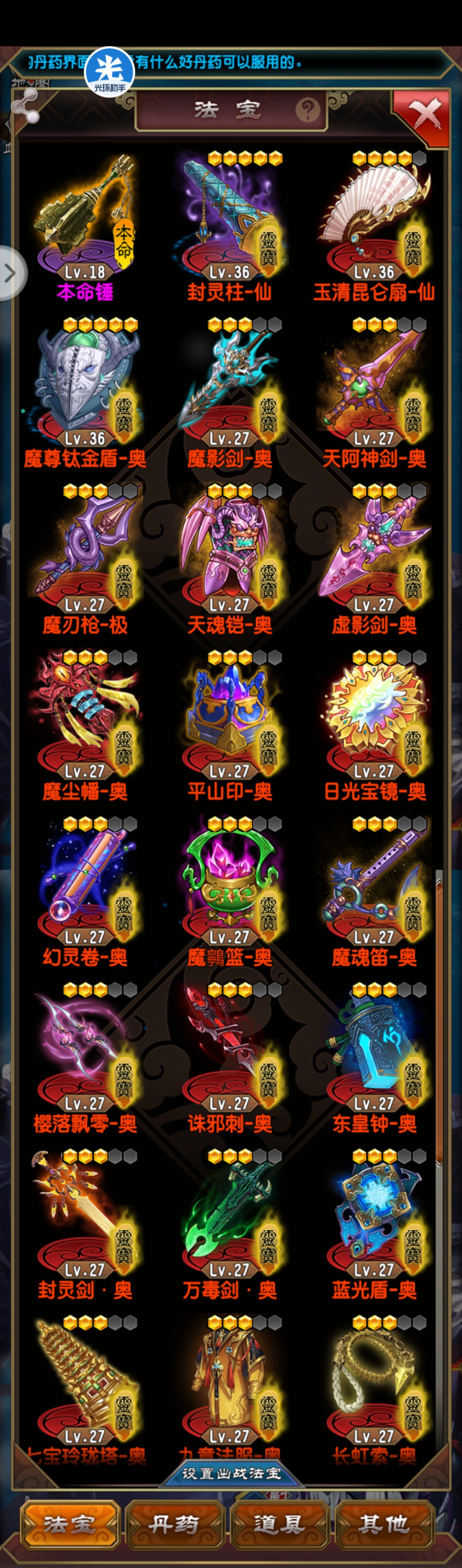 满级号,法宝已毕业,剩余资源多多。