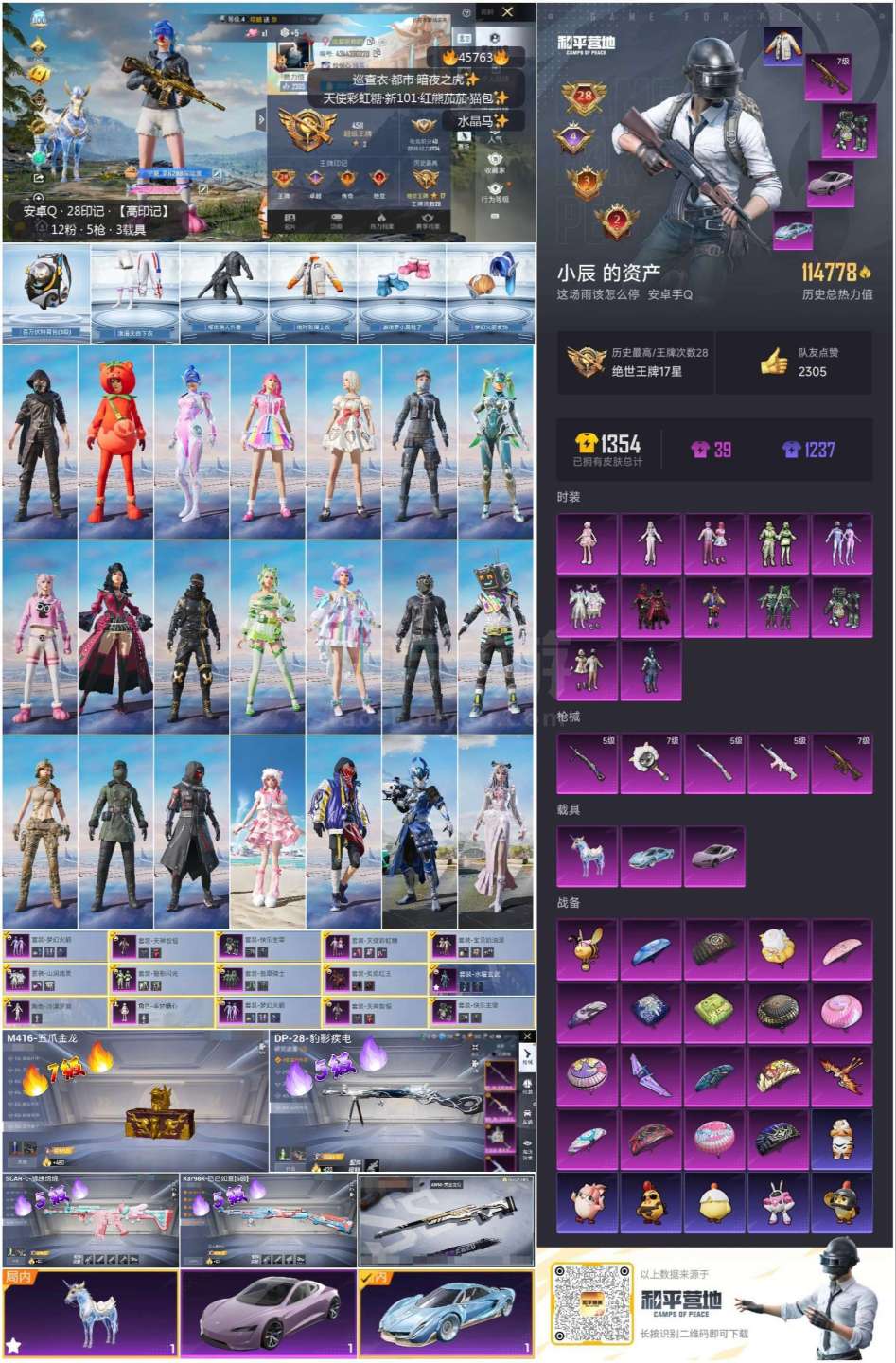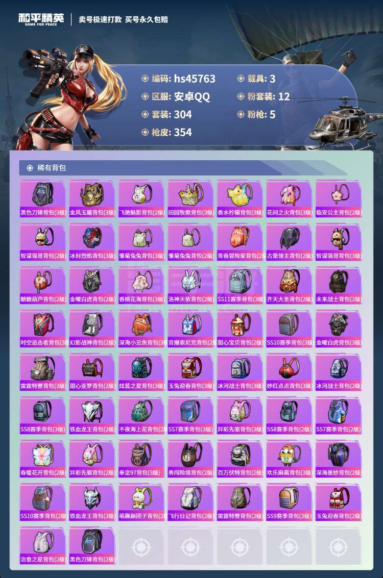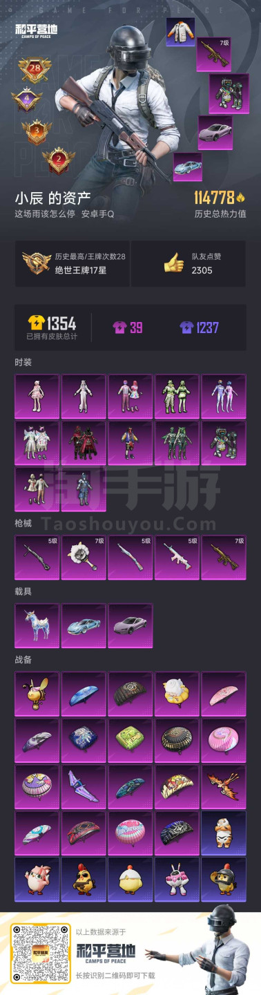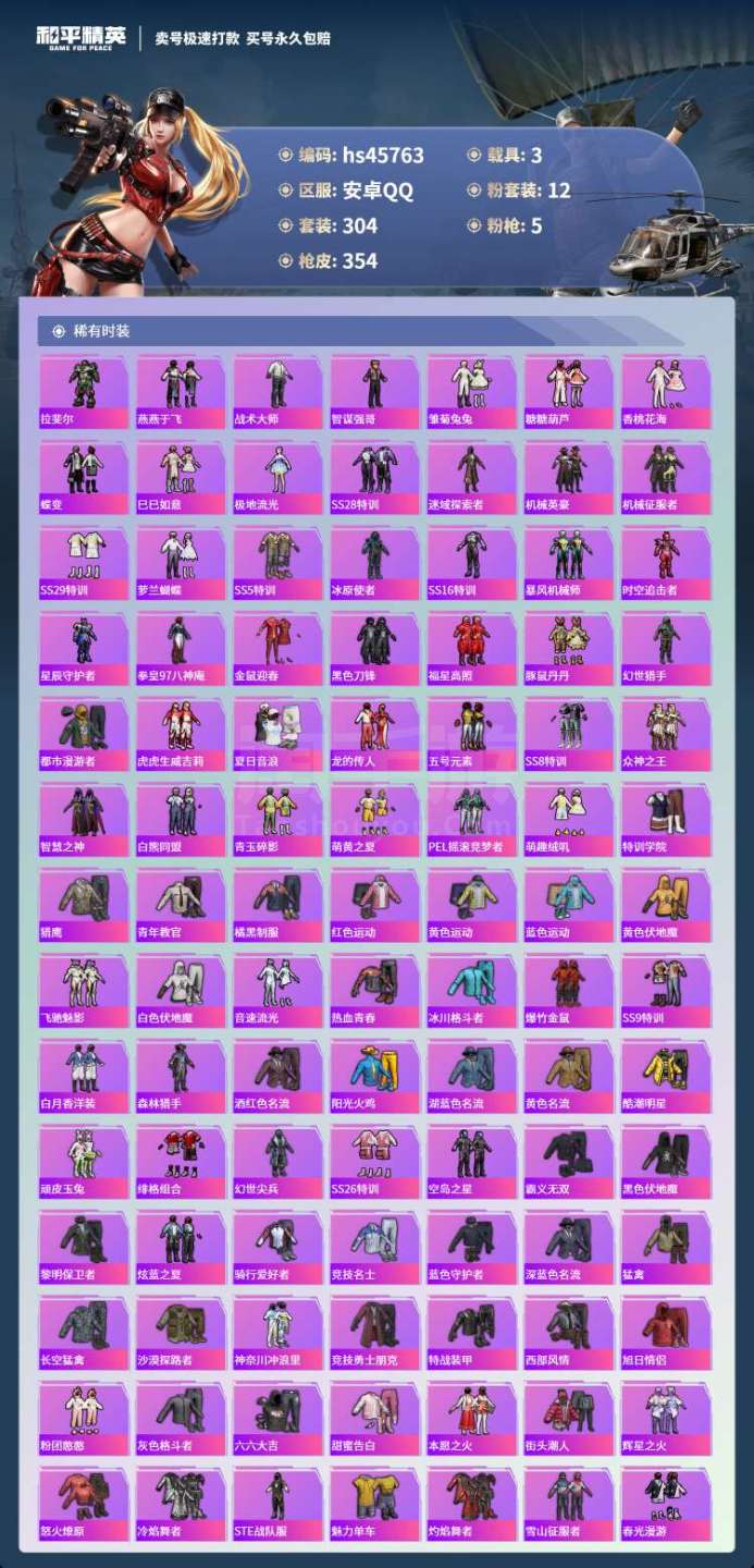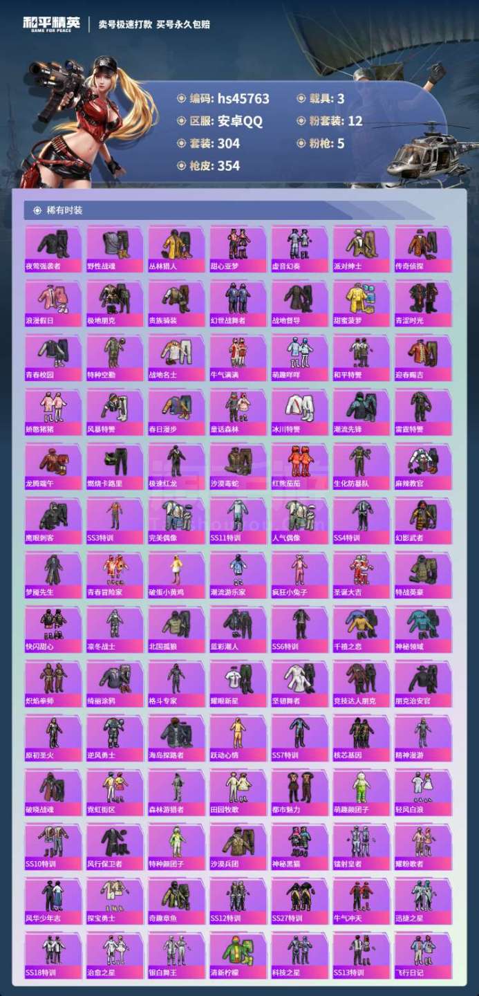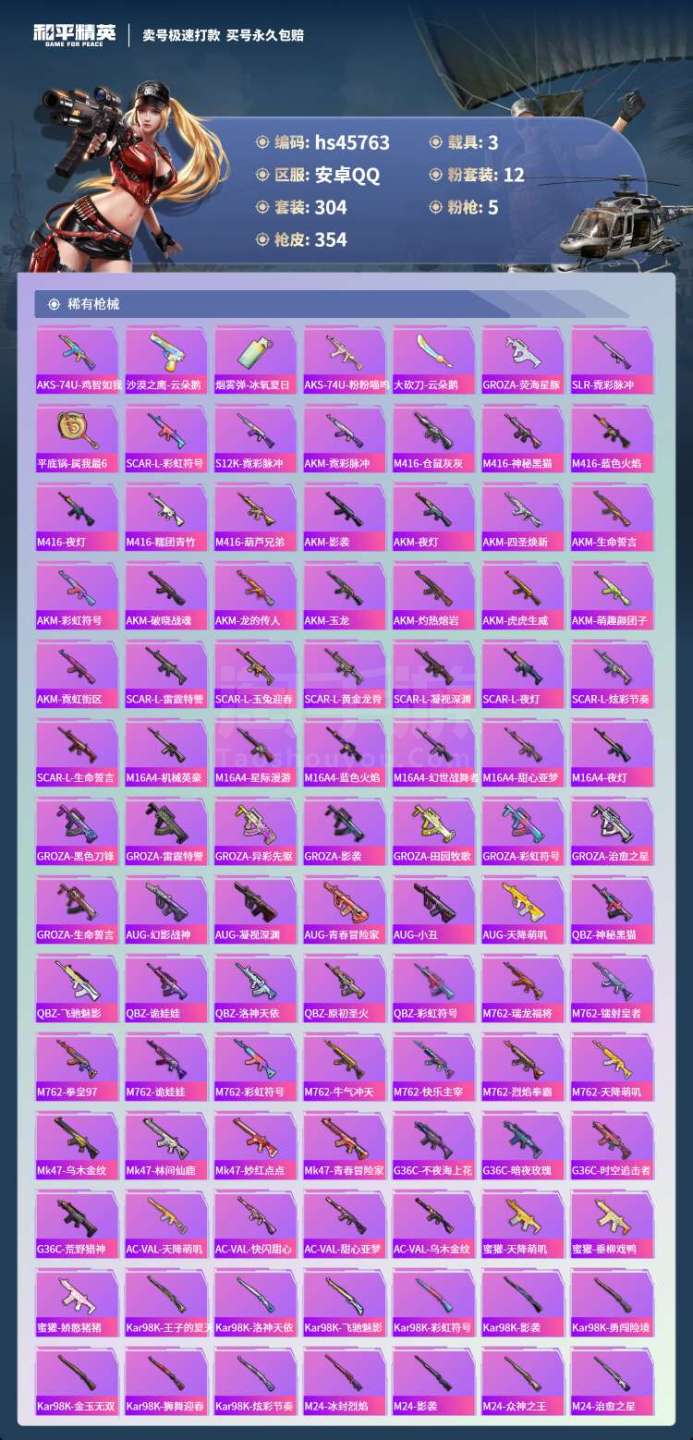 hs45763 安卓手Q-28王牌印记-12粉装-5特效枪-3载具-115118热力值-304套装-