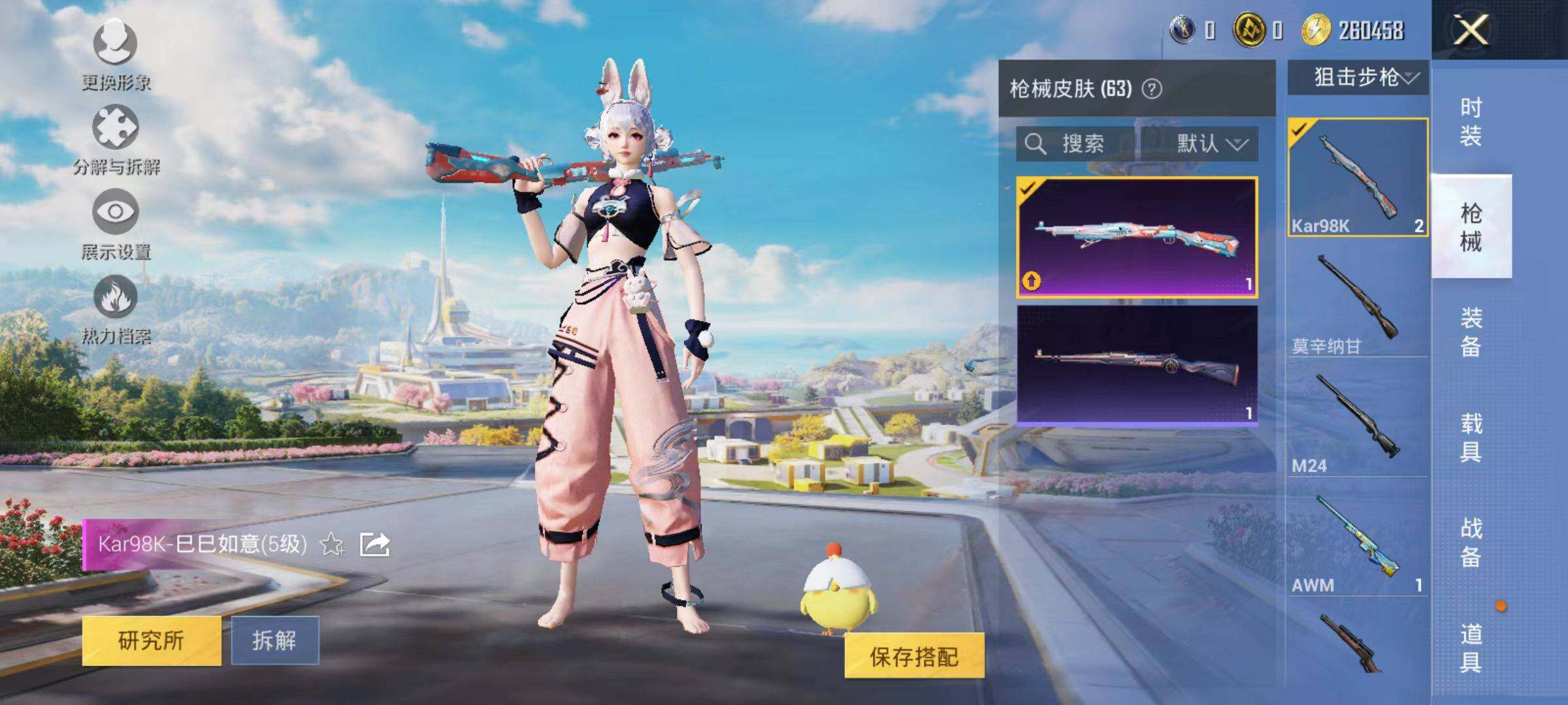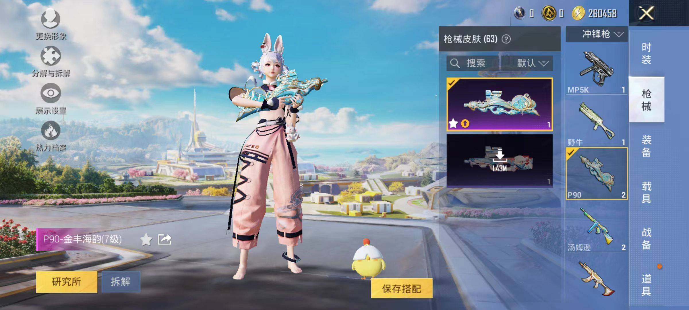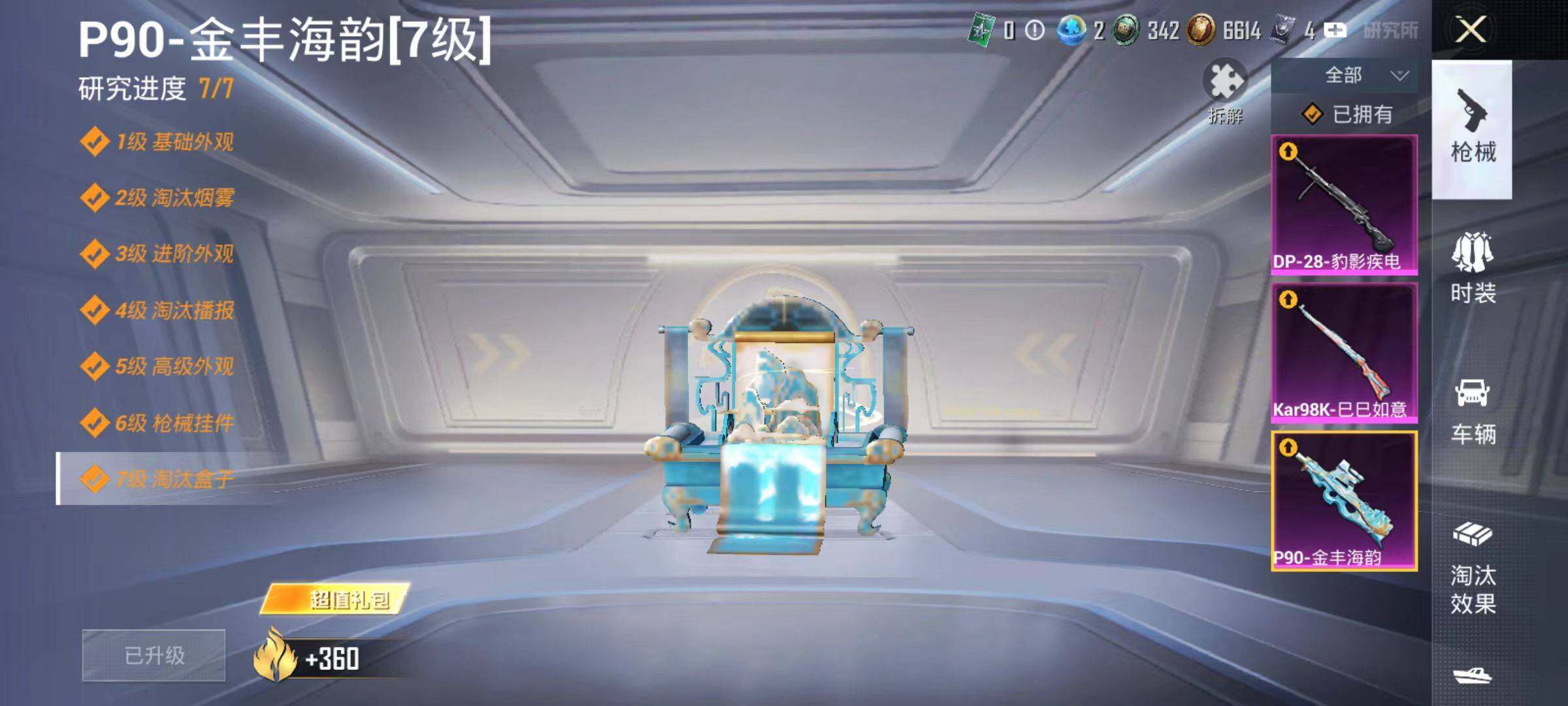 【粉色枪皮等级】:P90-金丰海韵(七级),Kar98K-巳巳如意(五级),DP-28-豹影疾电(一级)