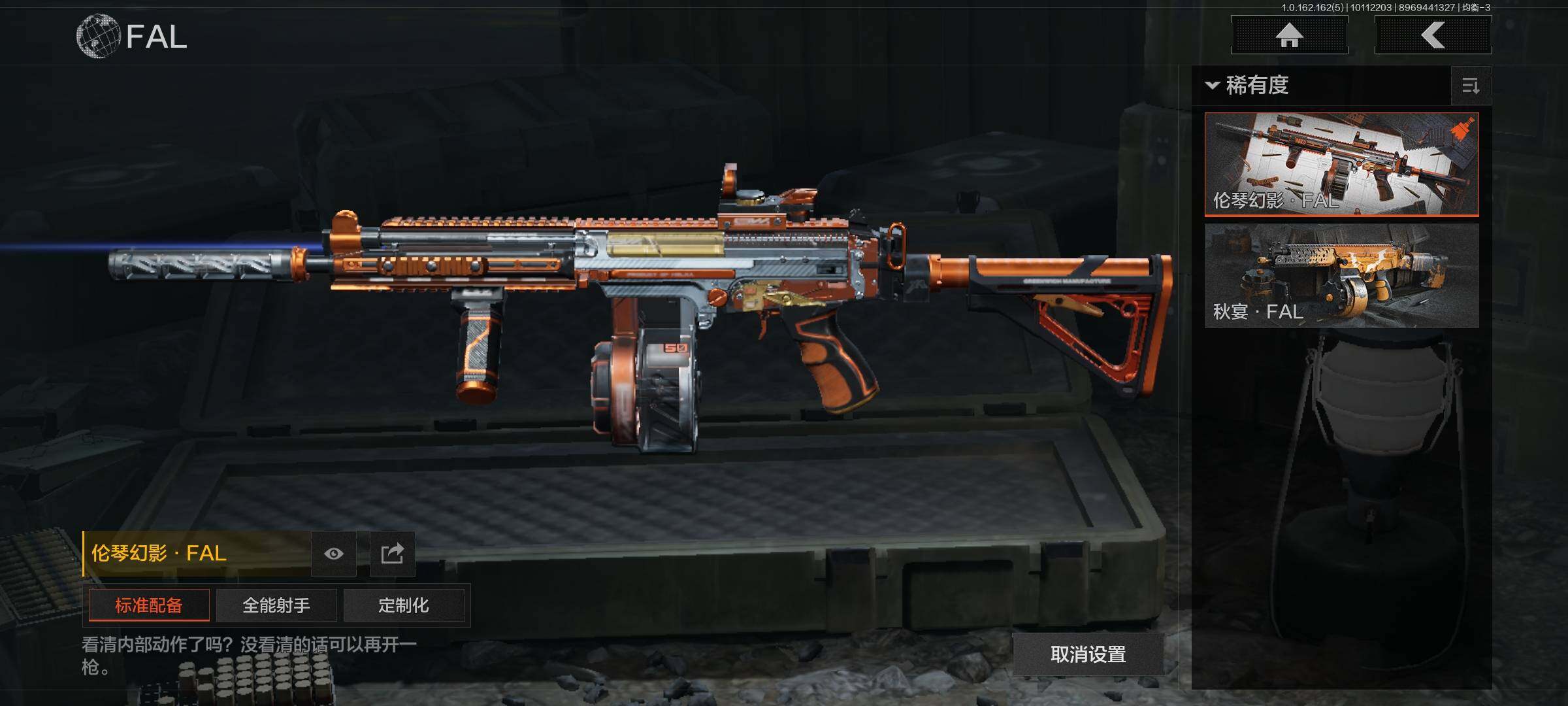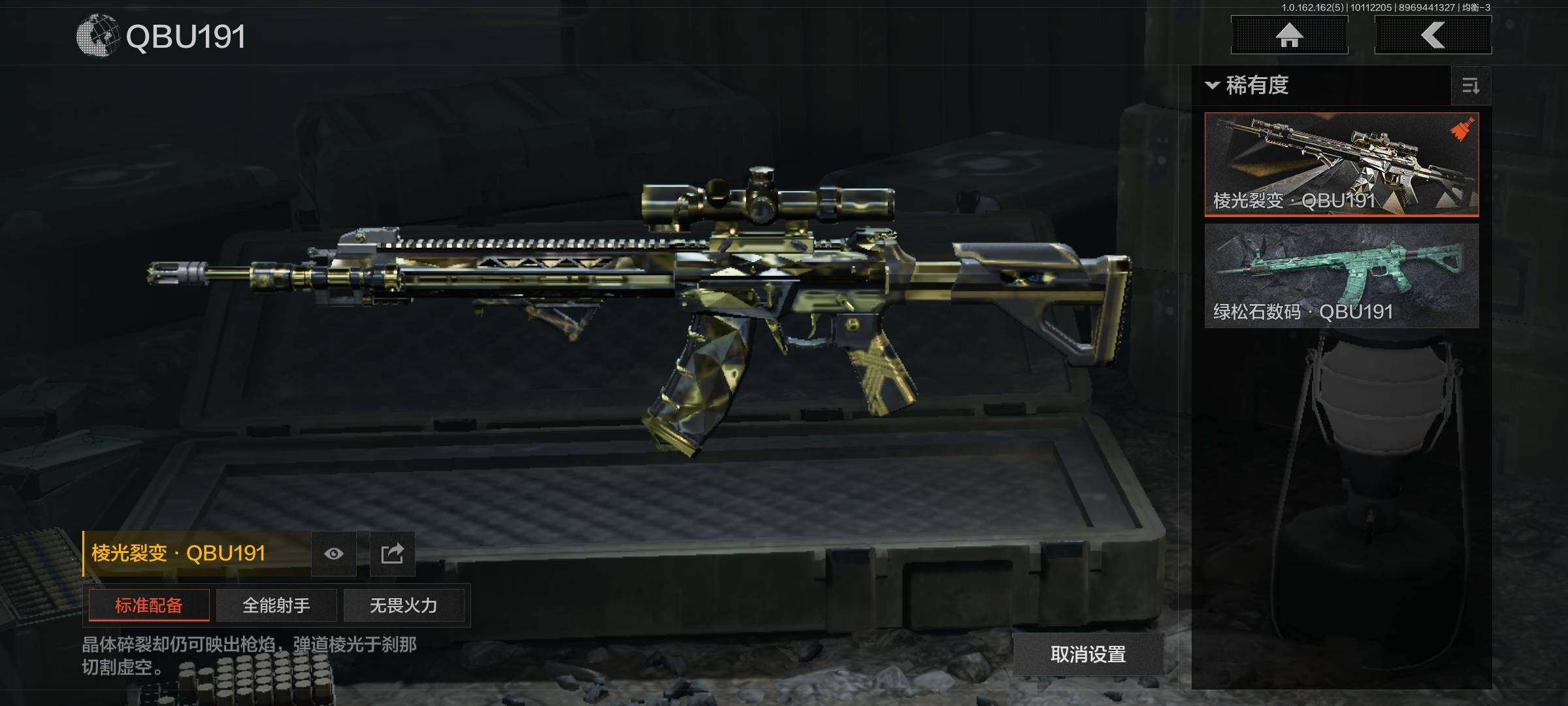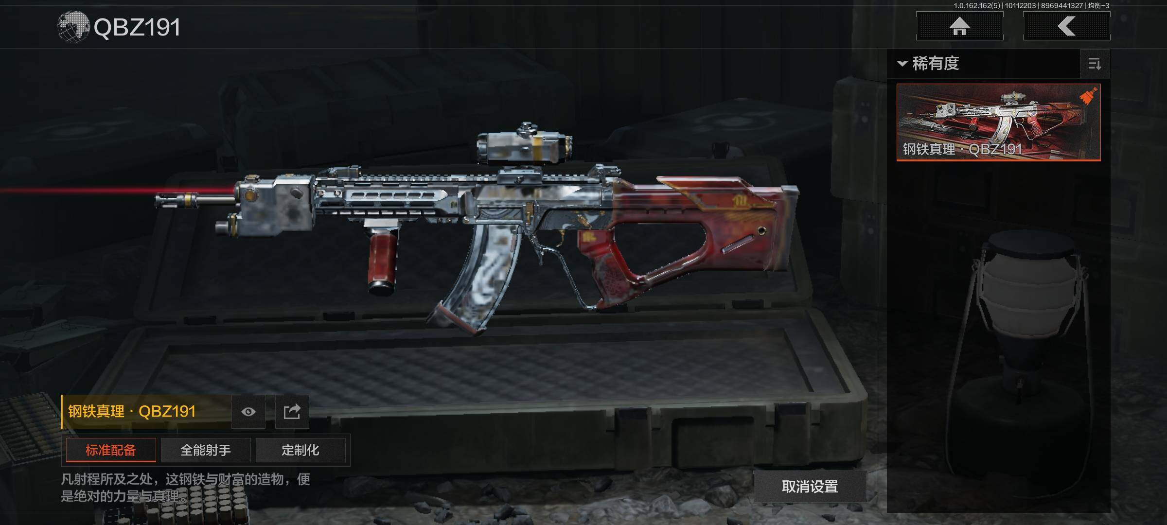 【金色枪皮】:伦琴幻影·FAL,蓝色咆哮·H416,旗帜·AEK,棱光裂变·QBU191,钢铁真理·QBZ191,利齿风暴·MPX,旧王圣谕·VSS