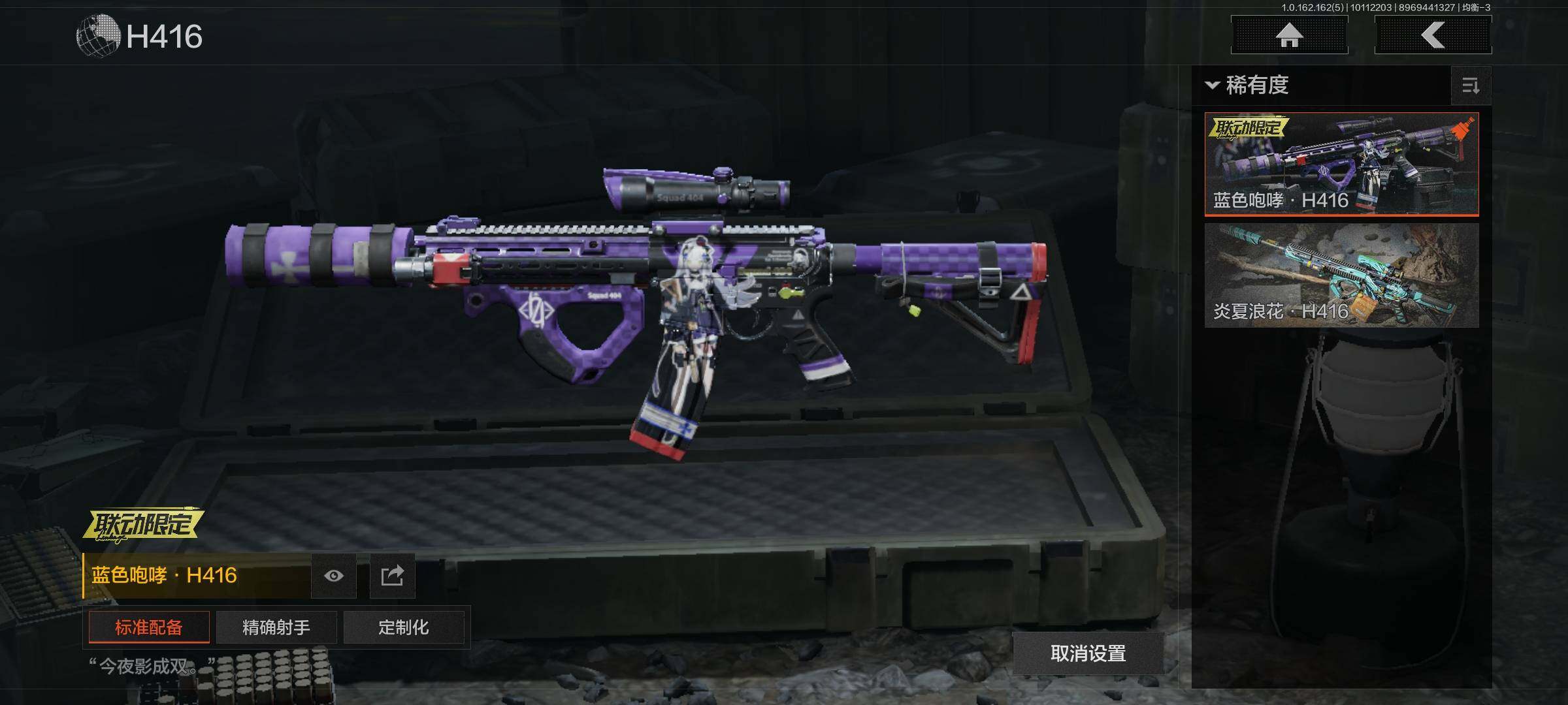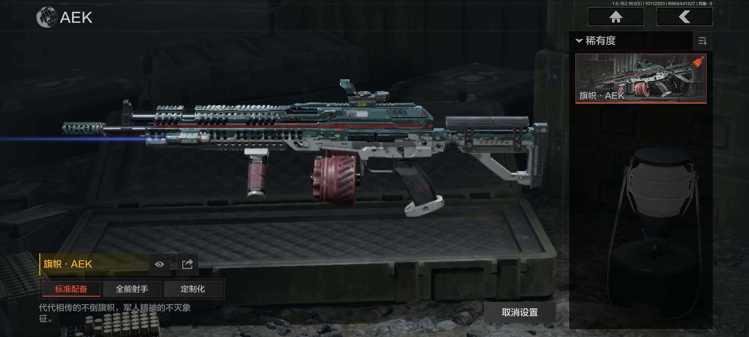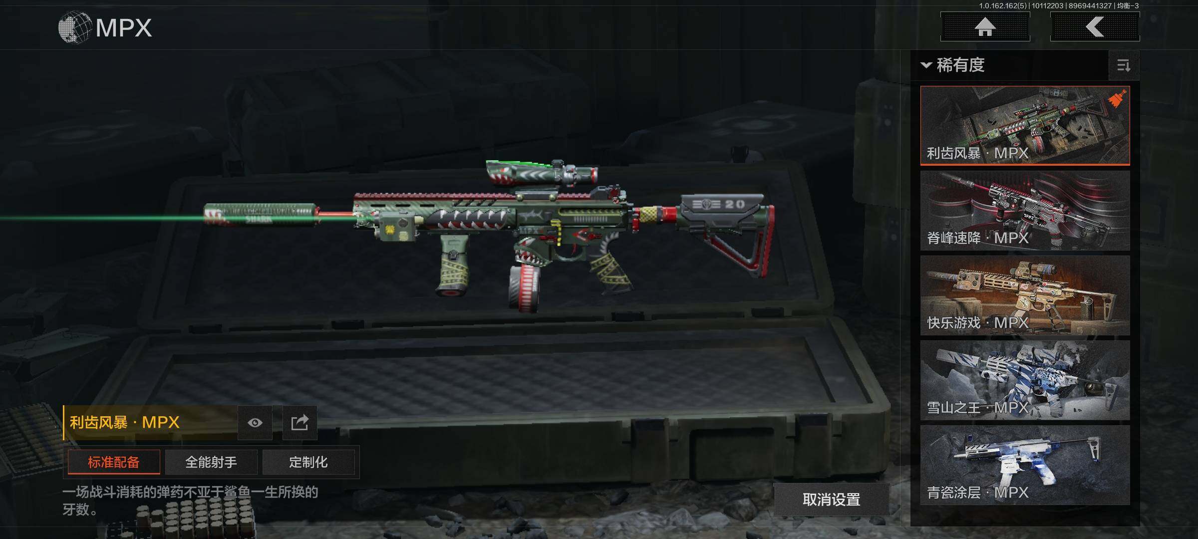 【金色枪皮】:伦琴幻影·FAL,蓝色咆哮·H416,旗帜·AEK,棱光裂变·QBU191,钢铁真理·QBZ191,利齿风暴·MPX,旧王圣谕·VSS