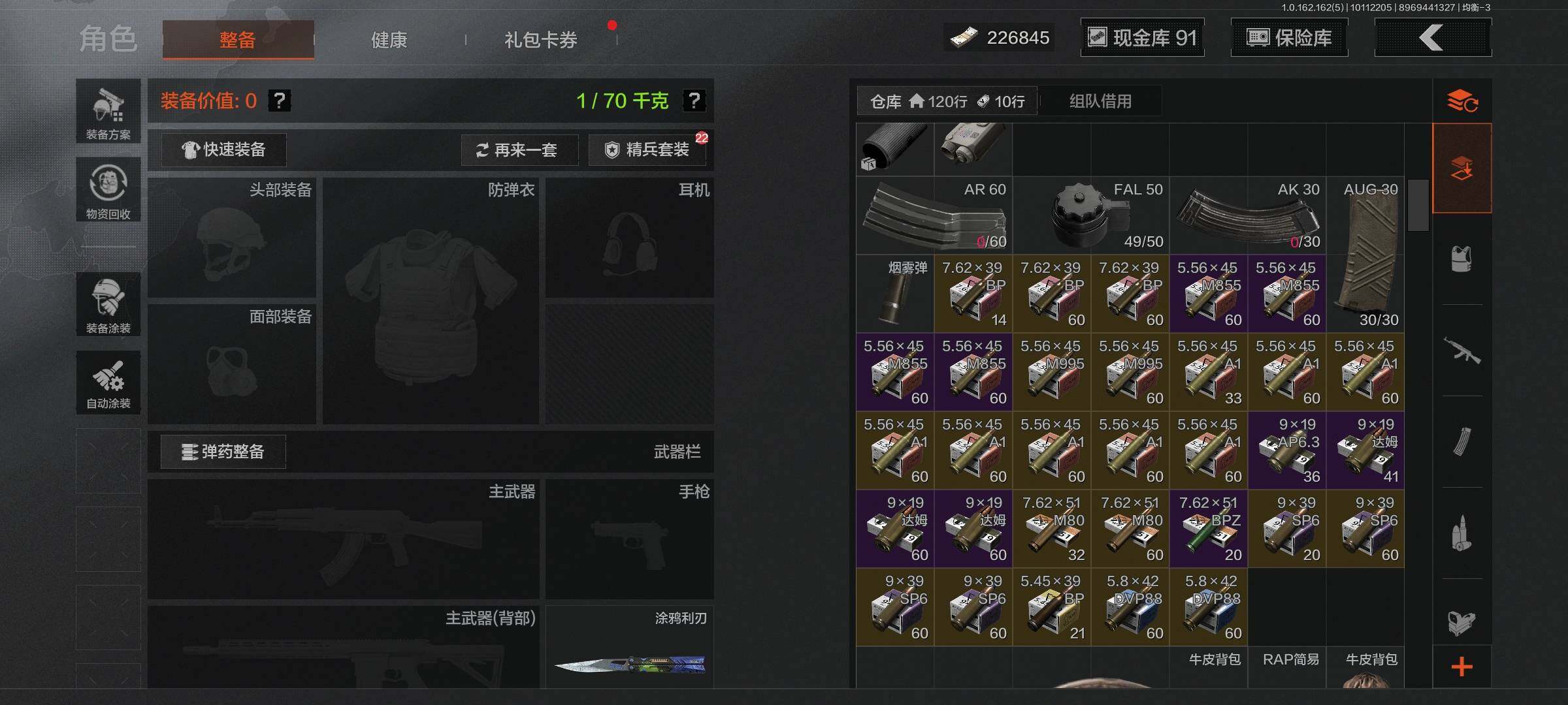 暗区突围【安卓QQ】安卓QQ,1把手感不错的刀皮,7把金枪,1个金衣,仓库价值1.9M,科恩币22