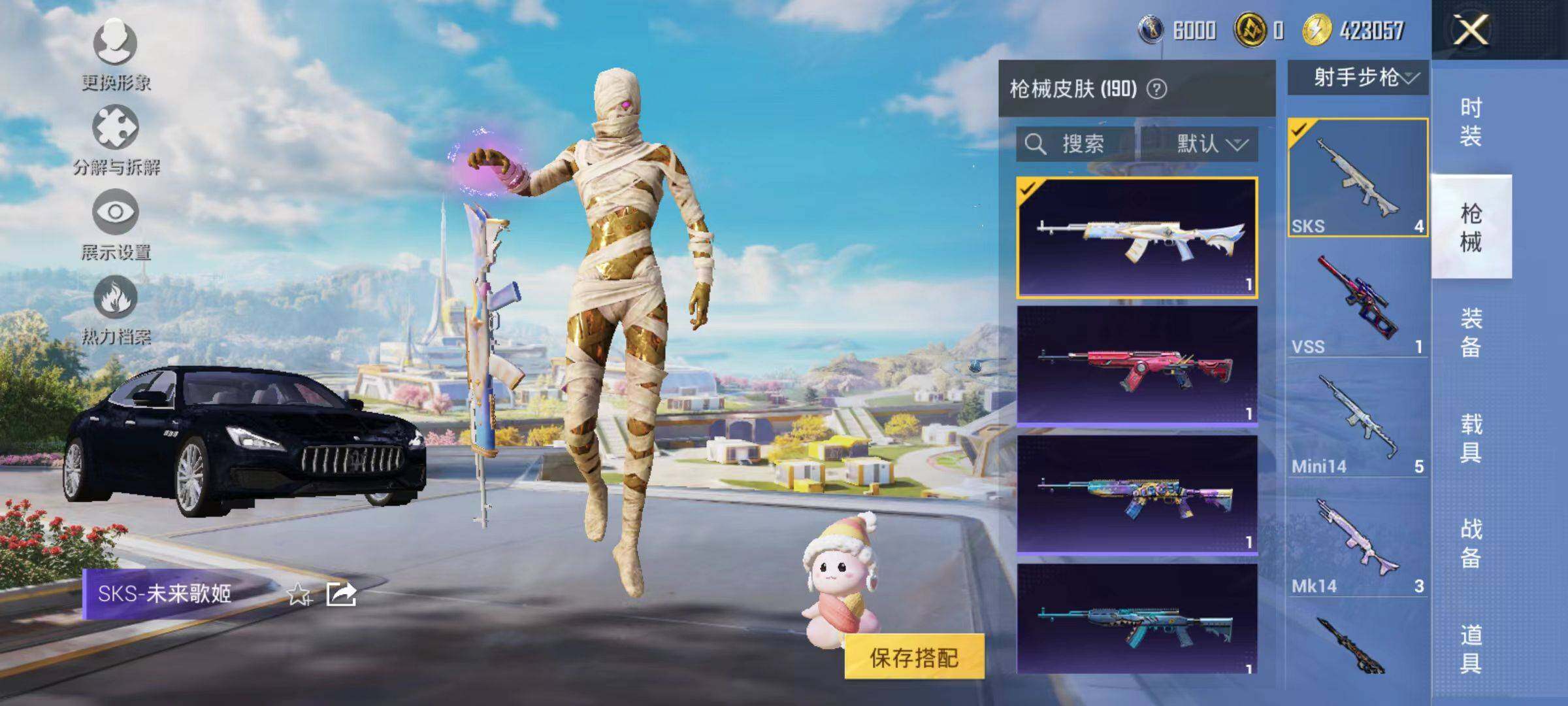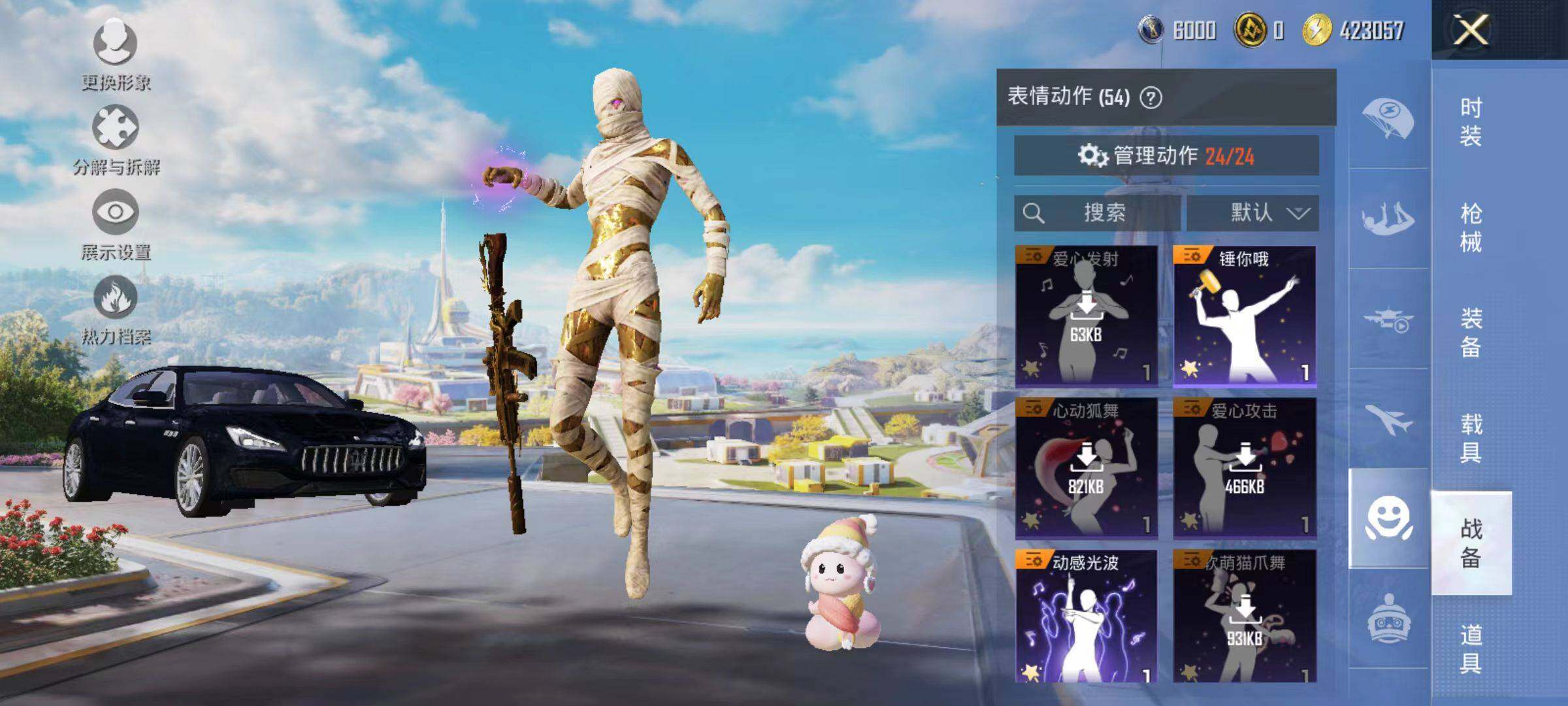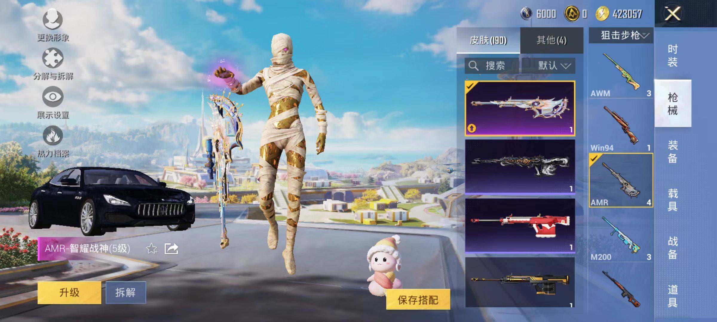 【商品标题】:安卓 手Q-1神装-8粉装-5特效枪-1载具-7粉色飞行器-67906热力值-8王牌印记-129套装-190枪皮