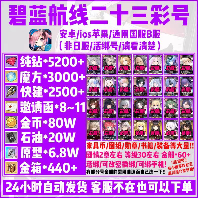 碧蓝航线【安卓4399】安卓4399服-6800钻5400魔方+25彩(信怨鳄约前施花鳐俾猃芒关胡萨阿莫鲁柯厌斐特狮圣䳆诗)